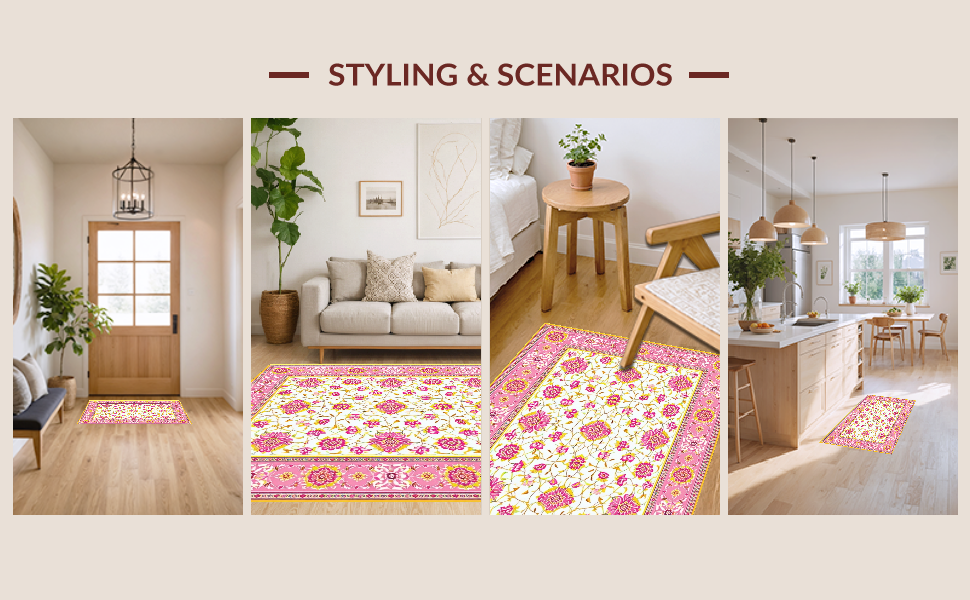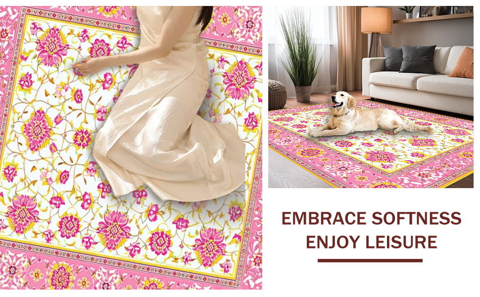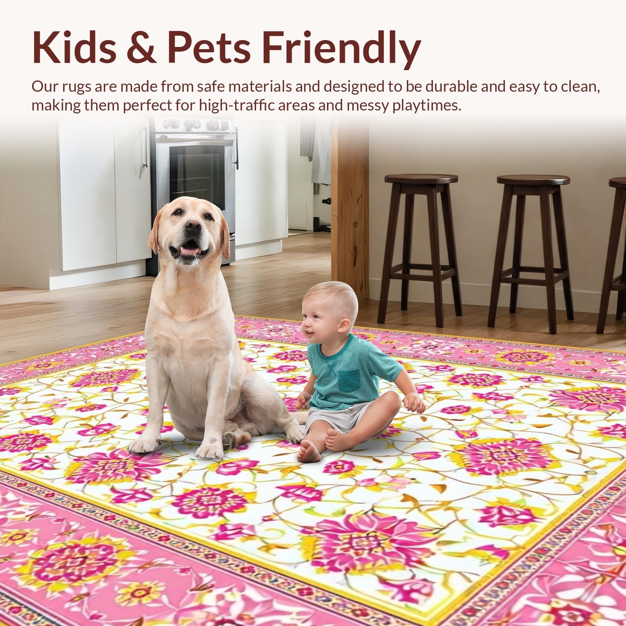 Ultra Soft Area Rug, Non Slip, Stain Resistant, Washable Area Rugs for Living Room, Bedroom, Eclectic Whimsical Floral Motif(Pink) Overview: