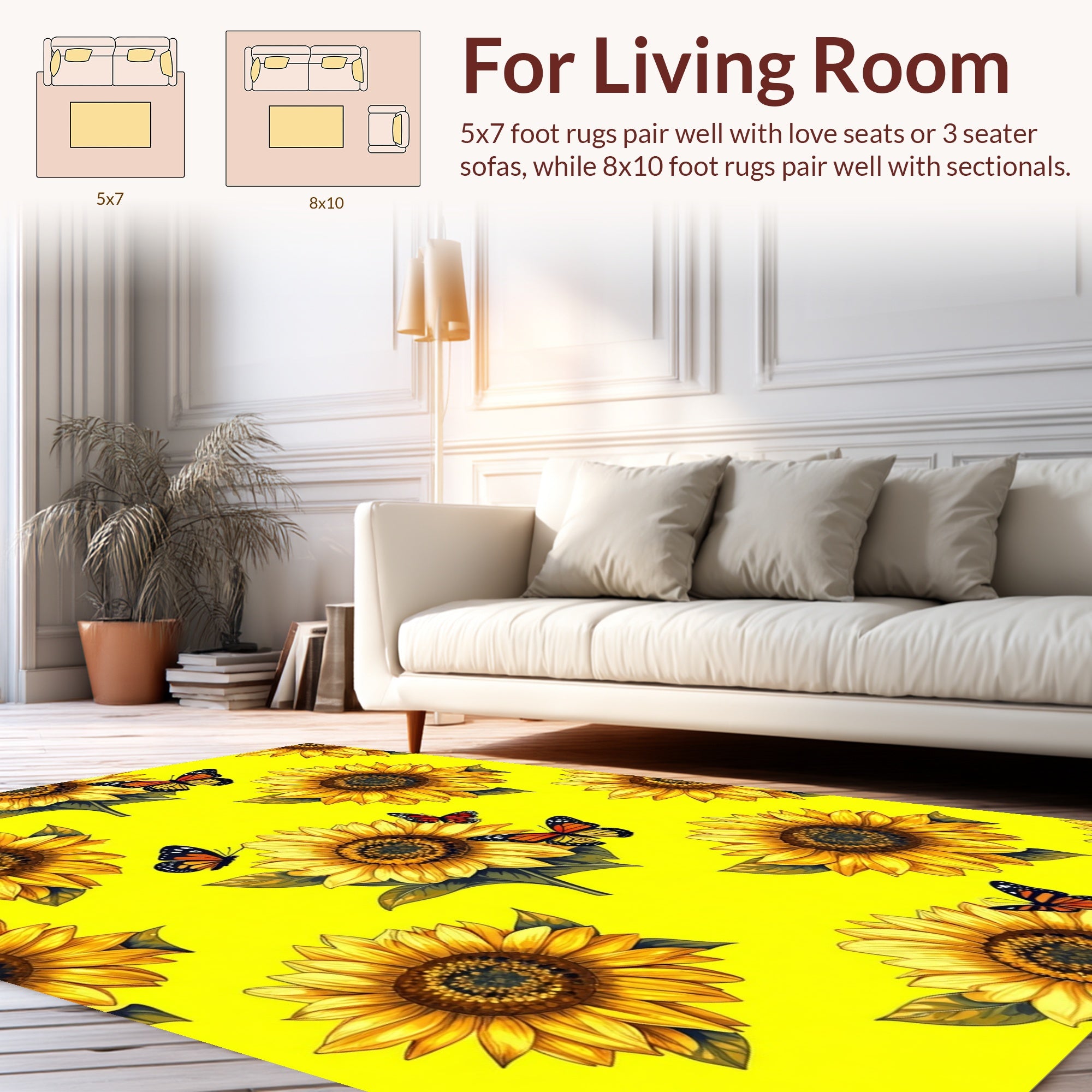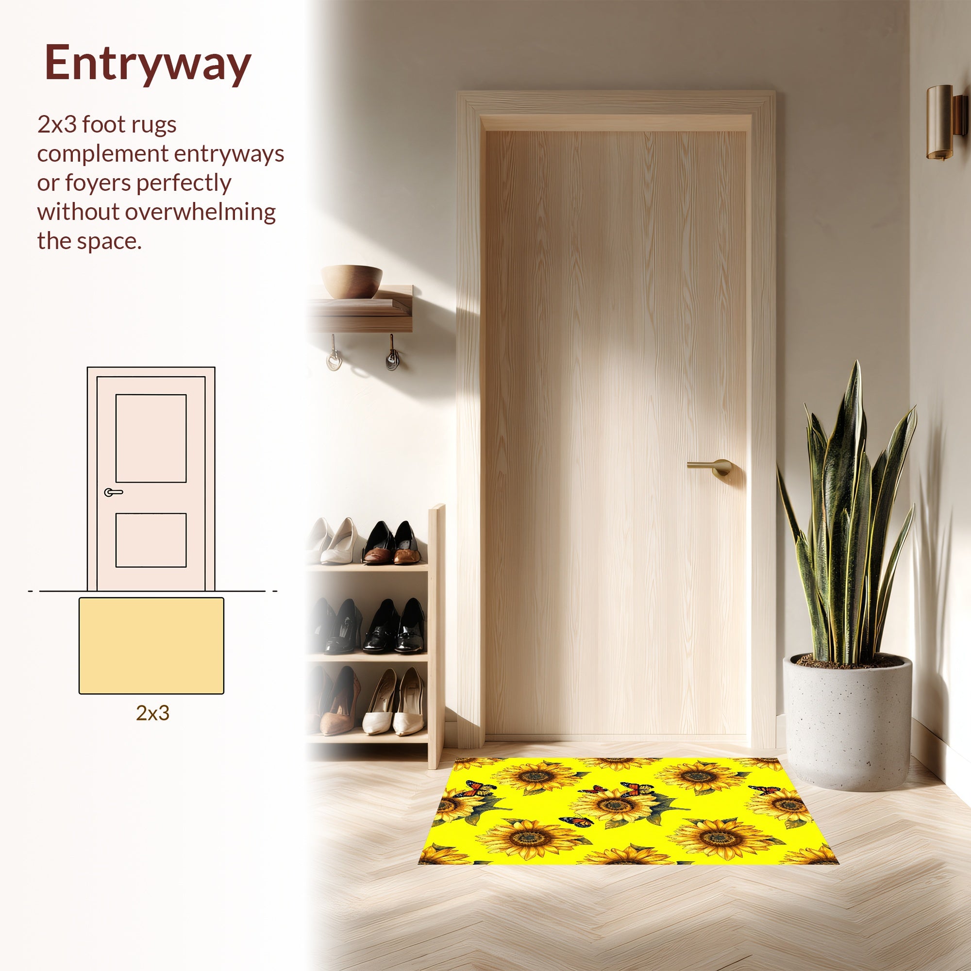 Flatwoven High Traffic Area Rug, Eclectic Yellow Aesthetic, Non Slip, Stain Resistant, Washable Area Rugs for Living Room, Bedroom (Yellow) Overview: