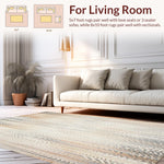 Ultra Soft Area Rug, Non Slip, Stain Resistant, Washable Area Rugs for Living Room, Bedroom, Eco Spiral Weave Area with Vintage Rustic Rings and Subtle Boho Elements(Beige) Overview: