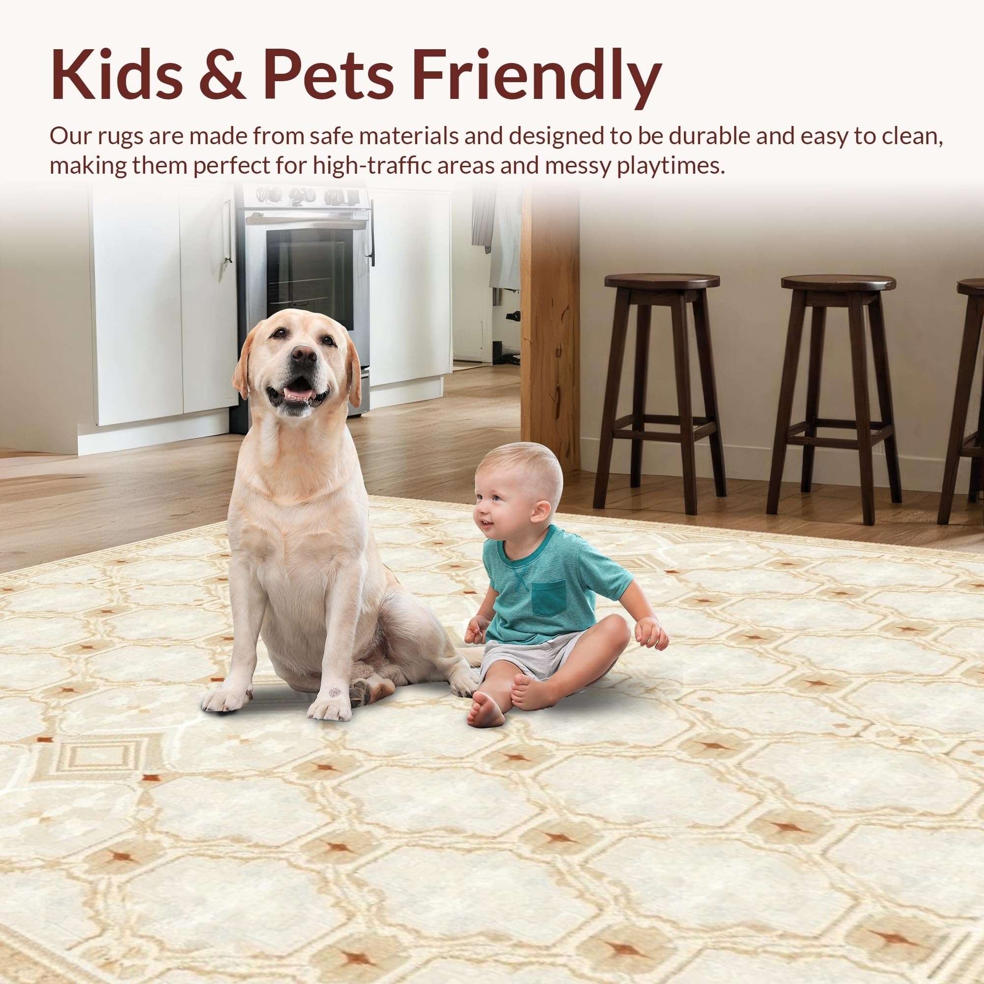 Ultra Soft Area Rug, Non Slip, Stain Resistant, Washable Area Rugs for Living Room, Bedroom, Edge Boho Area Rug with Geometric Diamond Lattice and Neutral Tones(Beige) Overview: