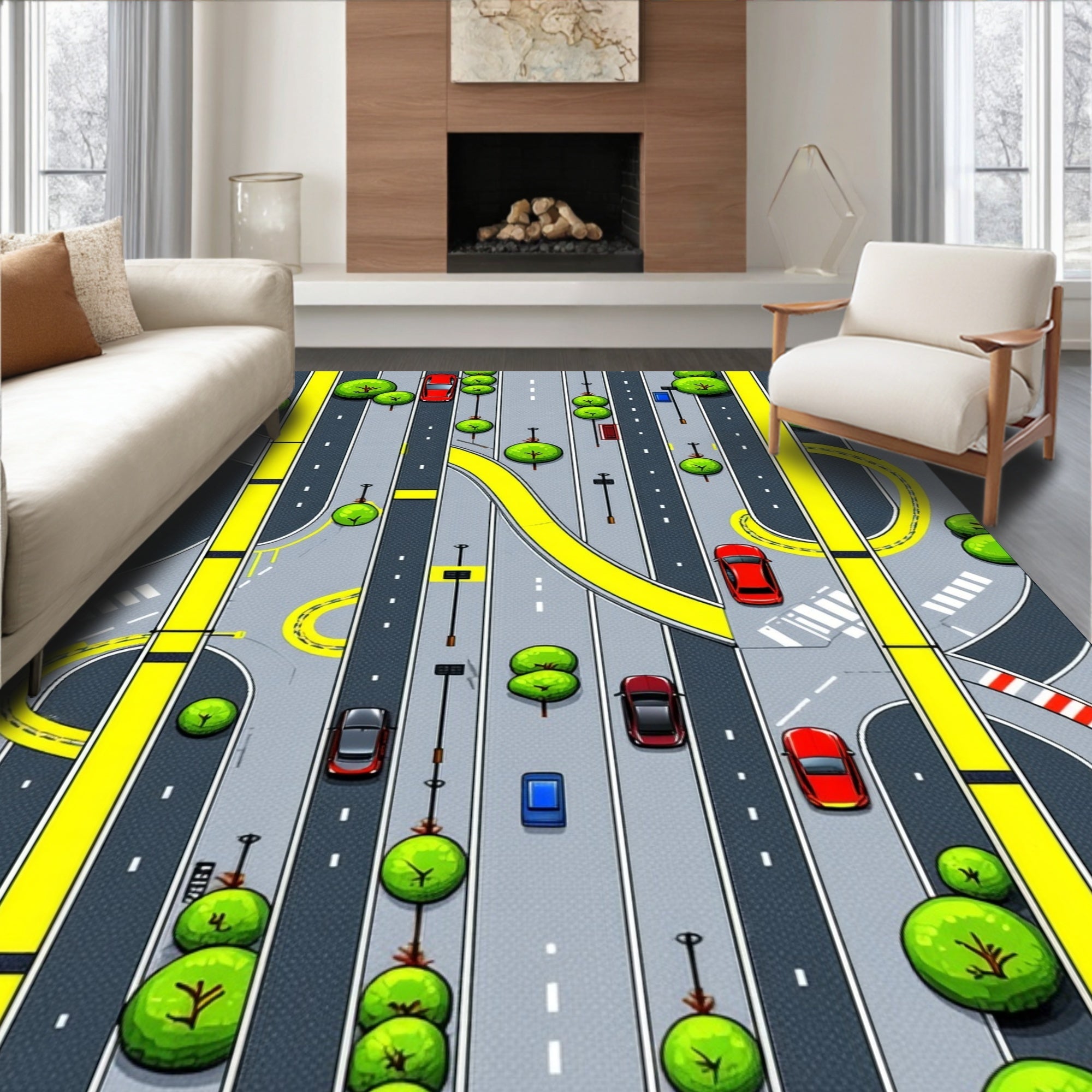 Flatwoven High Traffic Area Rug, Educational City Life Journey, Non Slip, Stain Resistant, Washable Area Rugs for Living Room, Bedroom (Yellow) Overview: