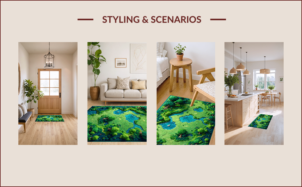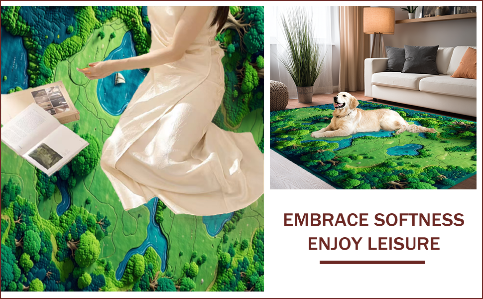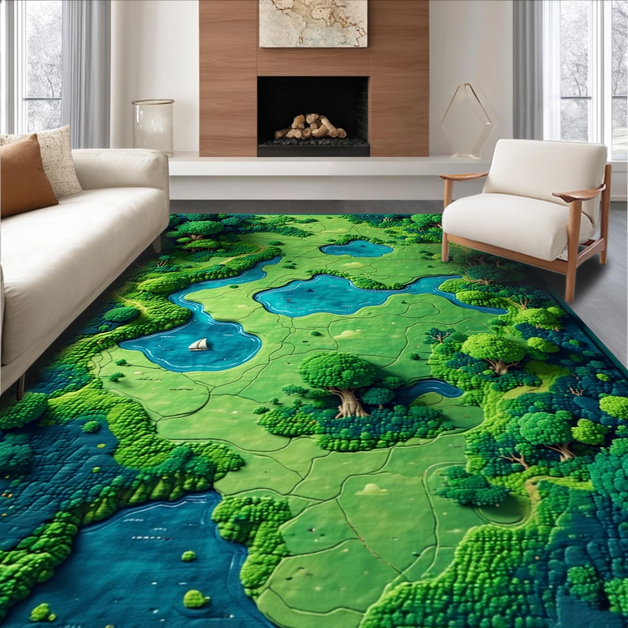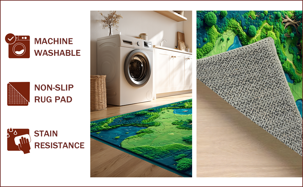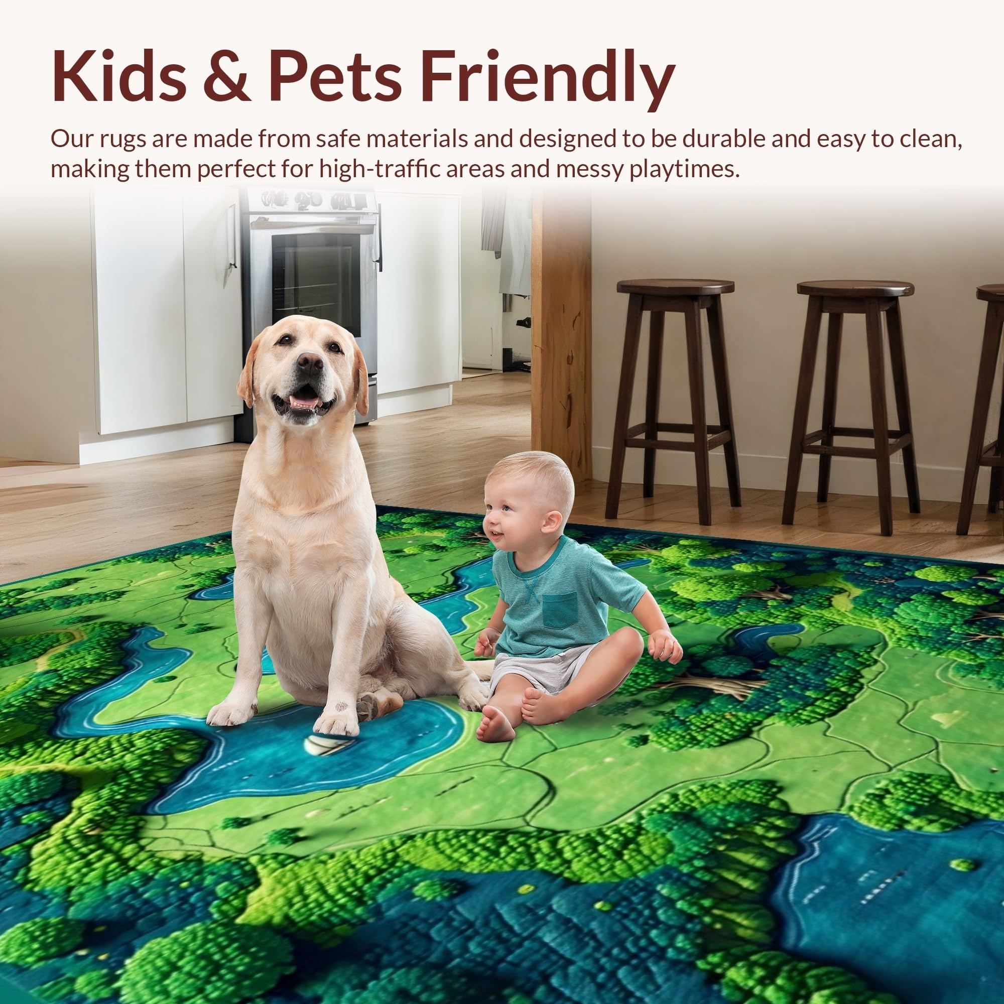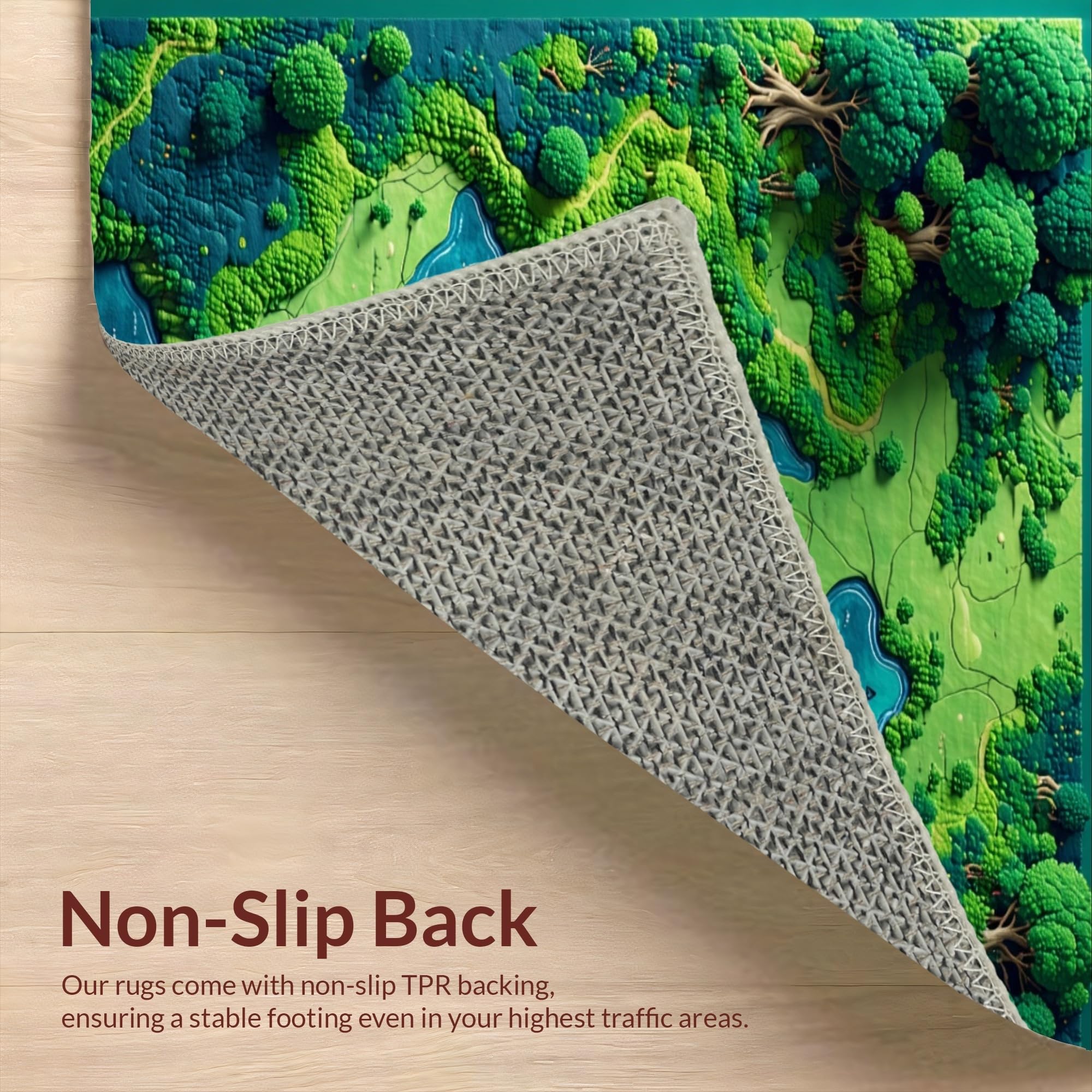 Ultra Soft Area Rug, Non Slip, Stain Resistant, Washable Area Rugs for Living Room, Bedroom, Educational Earth Tones Map Motif(Green) Overview: