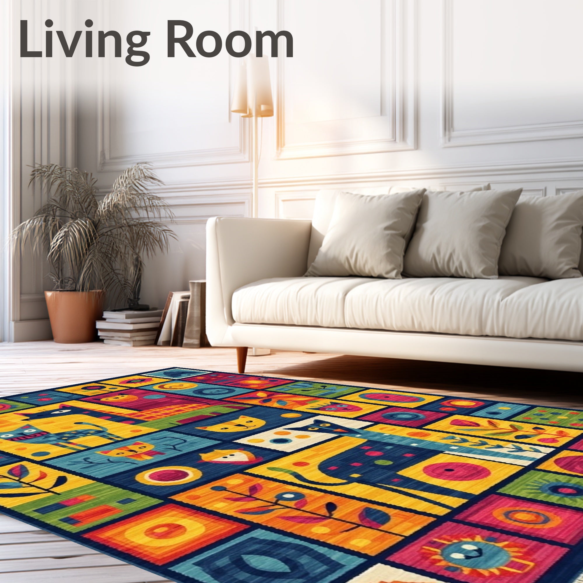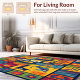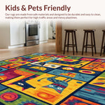 Ultra Soft Area Rug, Non Slip, Stain Resistant, Washable Area Rugs for Living Room, Bedroom, Educational Play Mat Colorful Shapes & Animals Area Rug(Blue) Overview:
