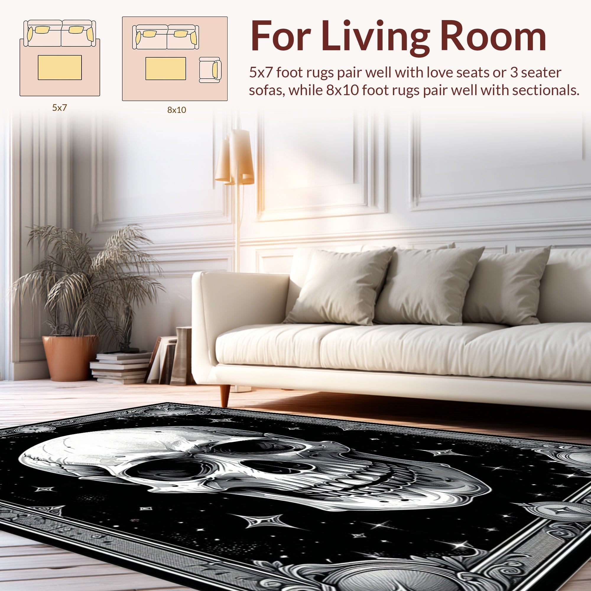 Flatwoven High Traffic Area Rug, Eerie Black Witchcraft Motif, Non Slip, Stain Resistant, Washable Area Rugs for Living Room, Bedroom (White) Overview: