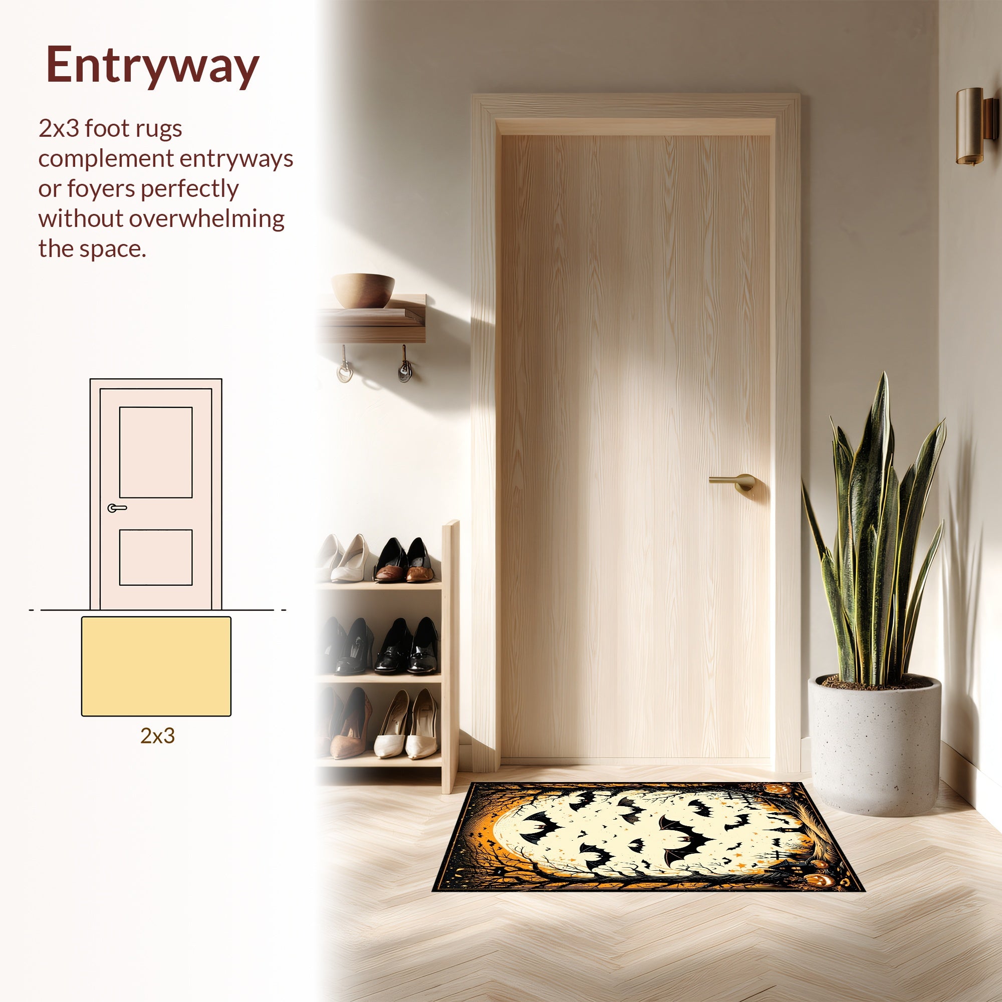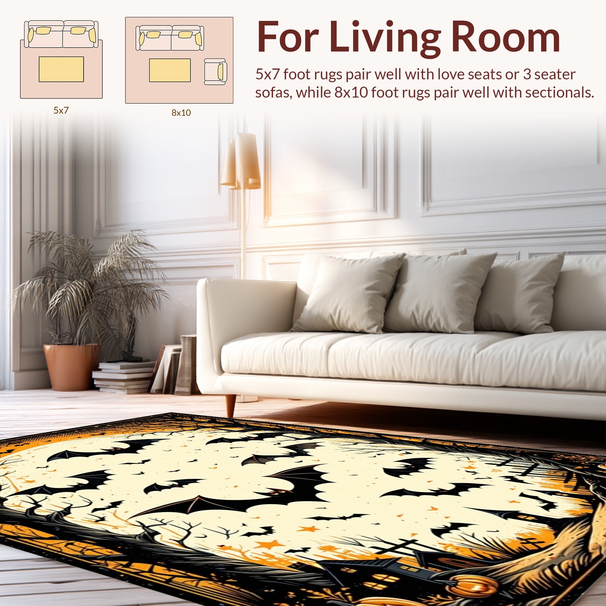 Flatwoven High Traffic Area Rug, Eerie Vintage Bat, Non Slip, Stain Resistant, Washable Area Rugs for Living Room, Bedroom (Black) Overview: