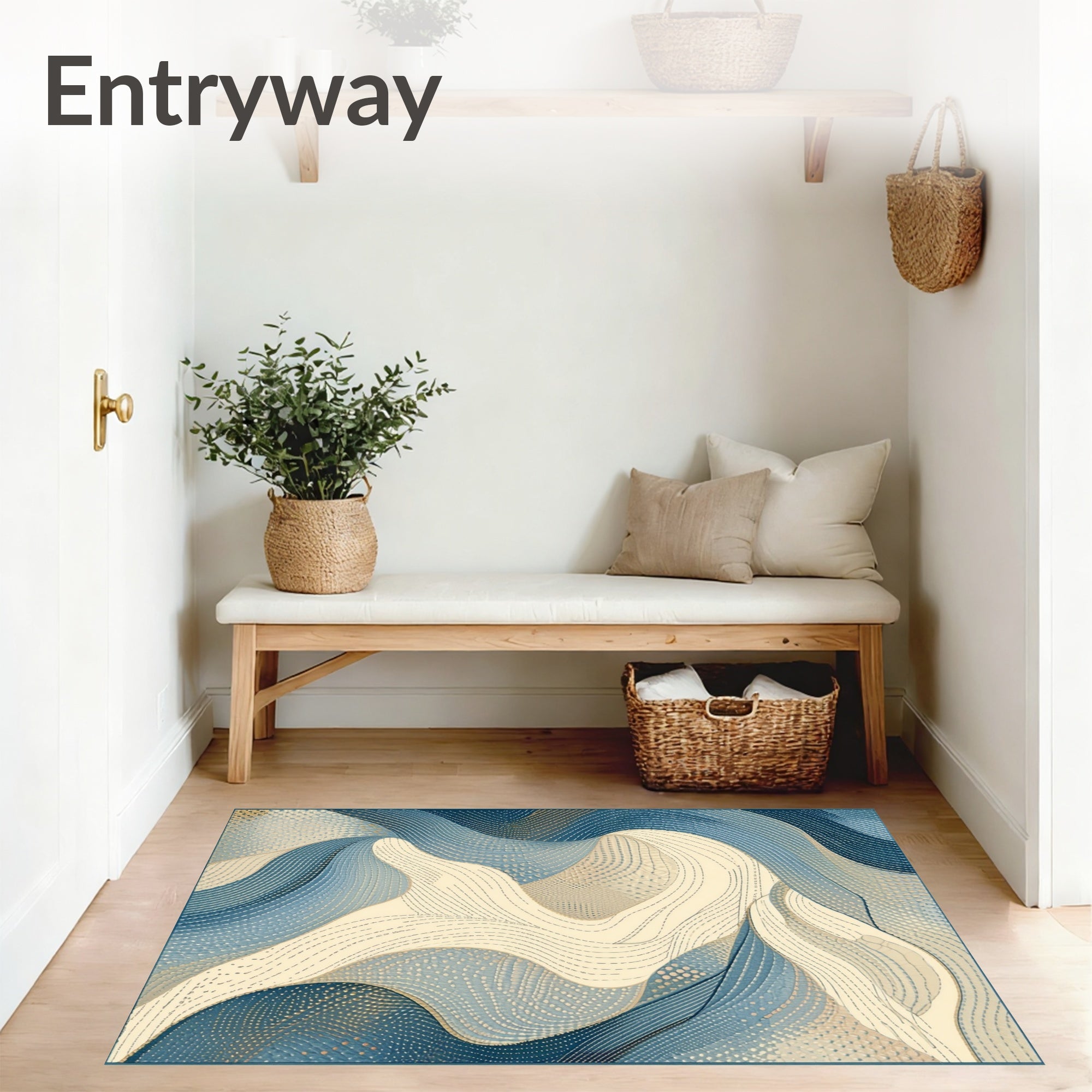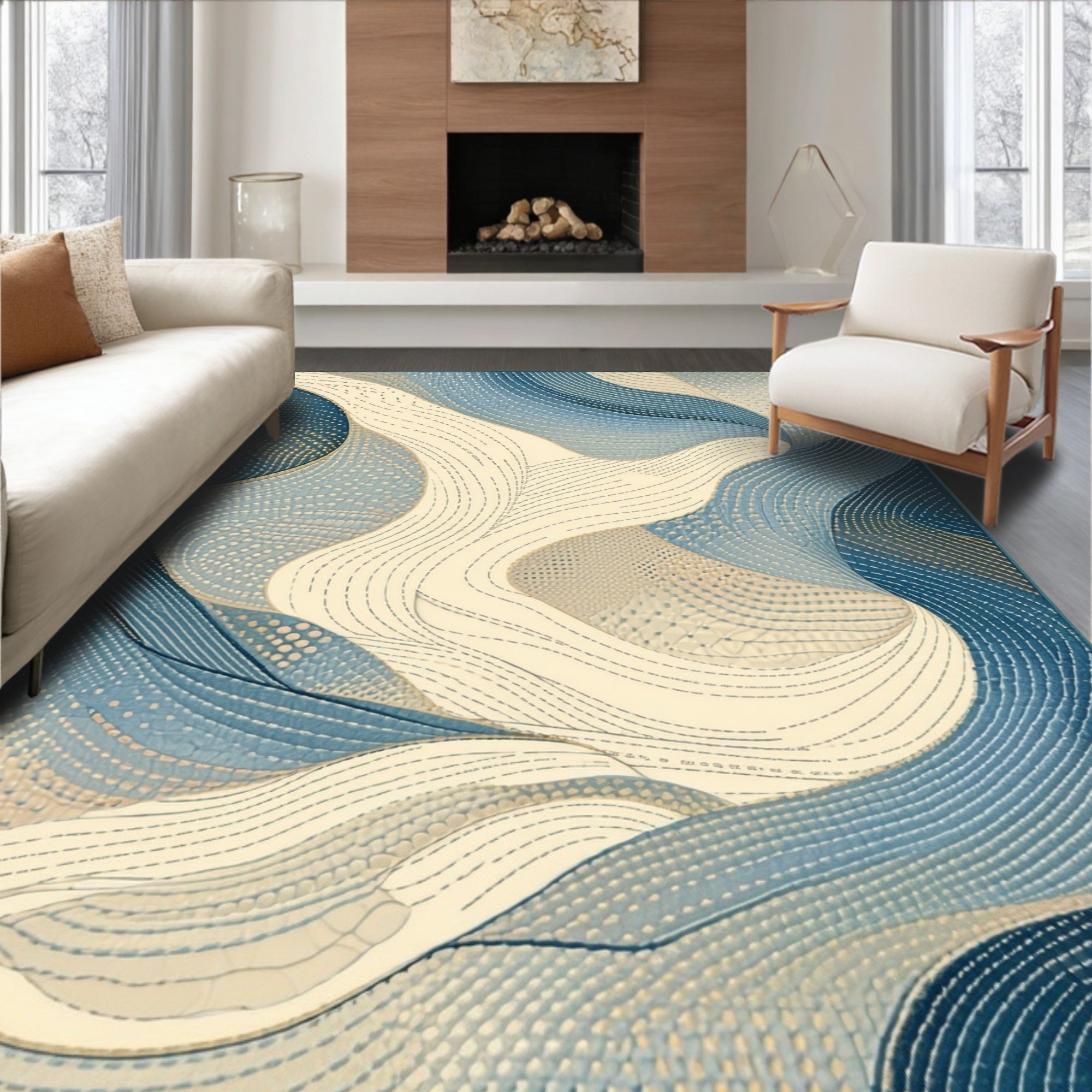 Elegant Abstract with Non Slip Backing for Modern Spaces(Blue)
