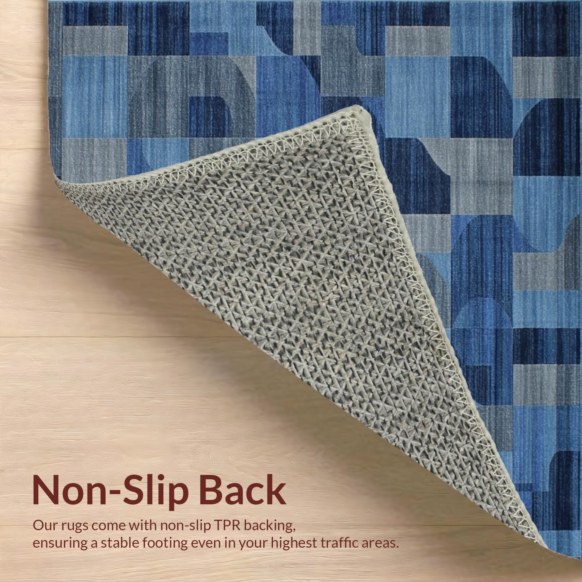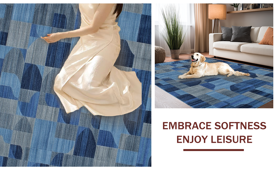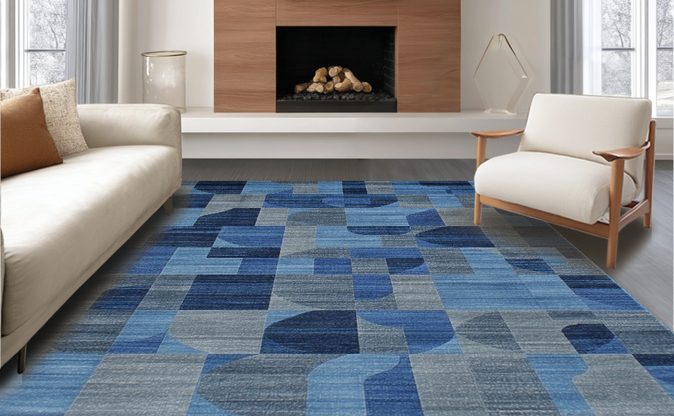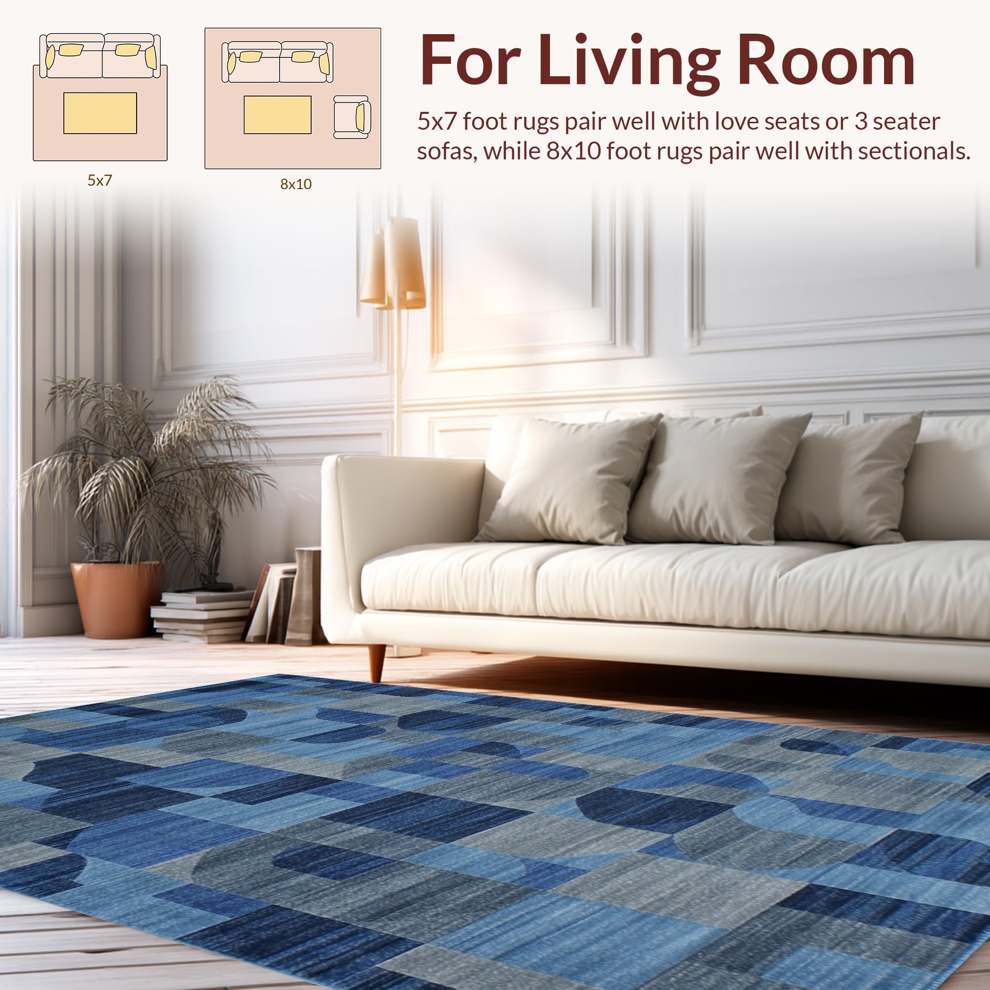 Ultra Soft Area Rug, Non Slip, Stain Resistant, Washable Area Rugs for Living Room, Bedroom, Elegant Abstract Coastal Aesthetic(Blue) Overview: