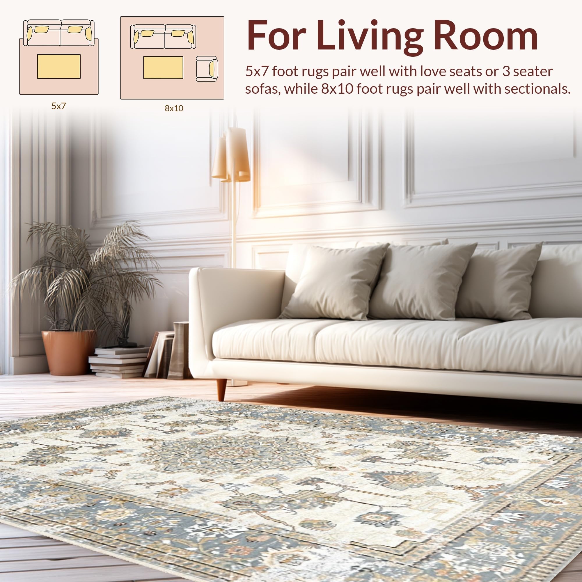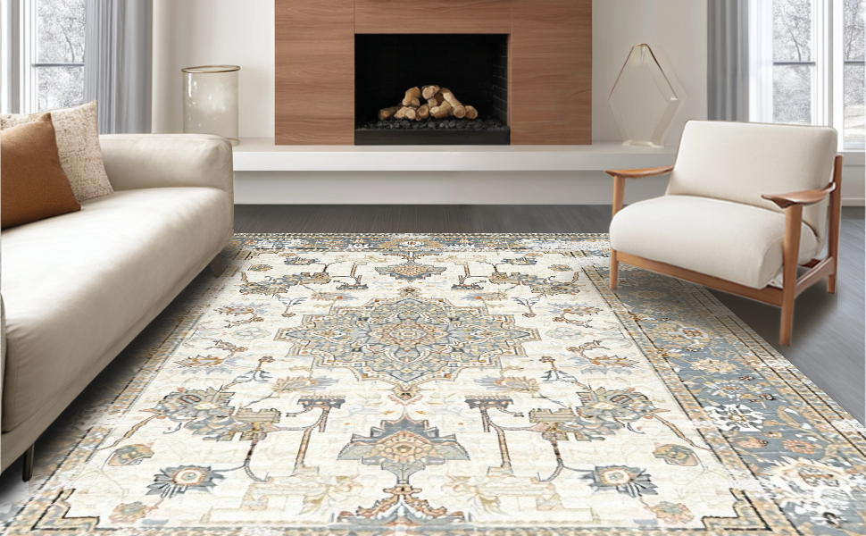 Ultra Soft Area Rug, Non Slip, Stain Resistant, Washable Area Rugs for Living Room, Bedroom, Elegant Abstract Design with Neutral Tones(Beige) Overview: