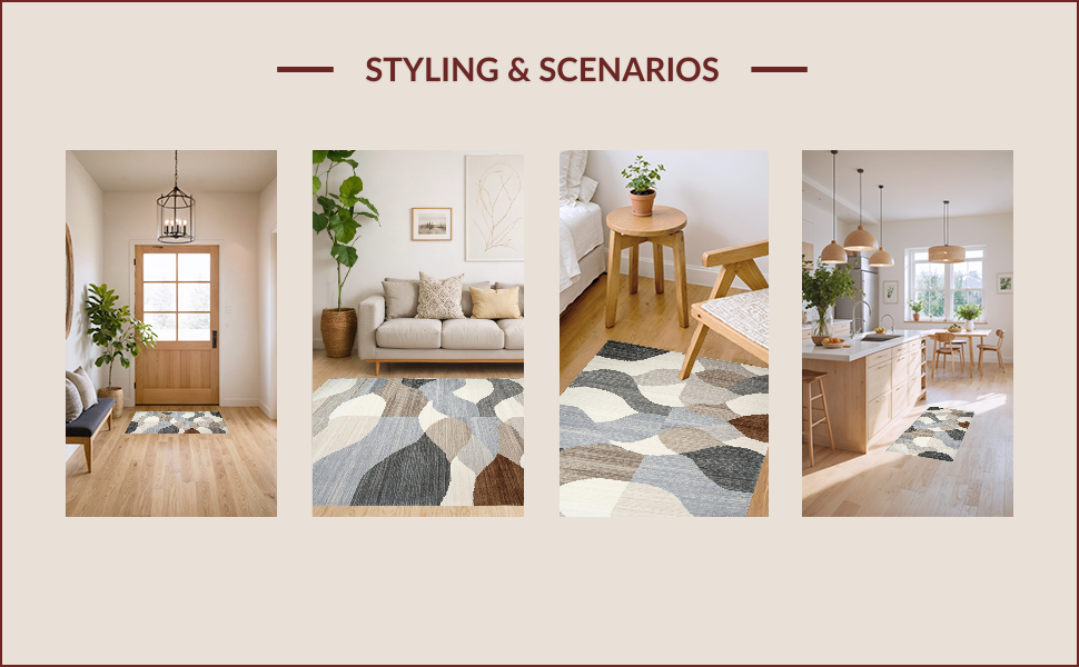 Ultra Soft Area Rug, Non Slip, Stain Resistant, Washable Area Rugs for Living Room, Bedroom, Elegant Abstract Earthy Tones(Gray) Overview: