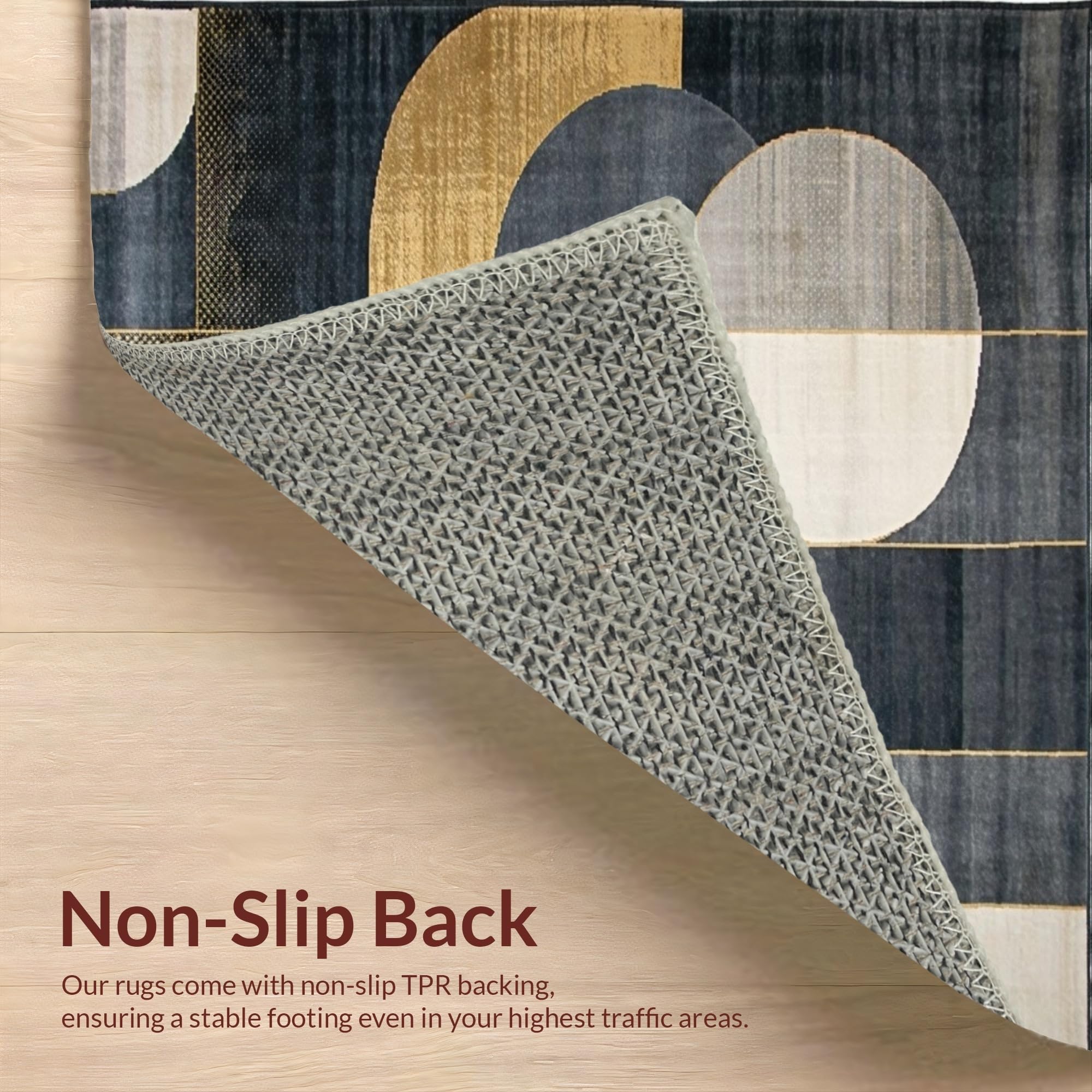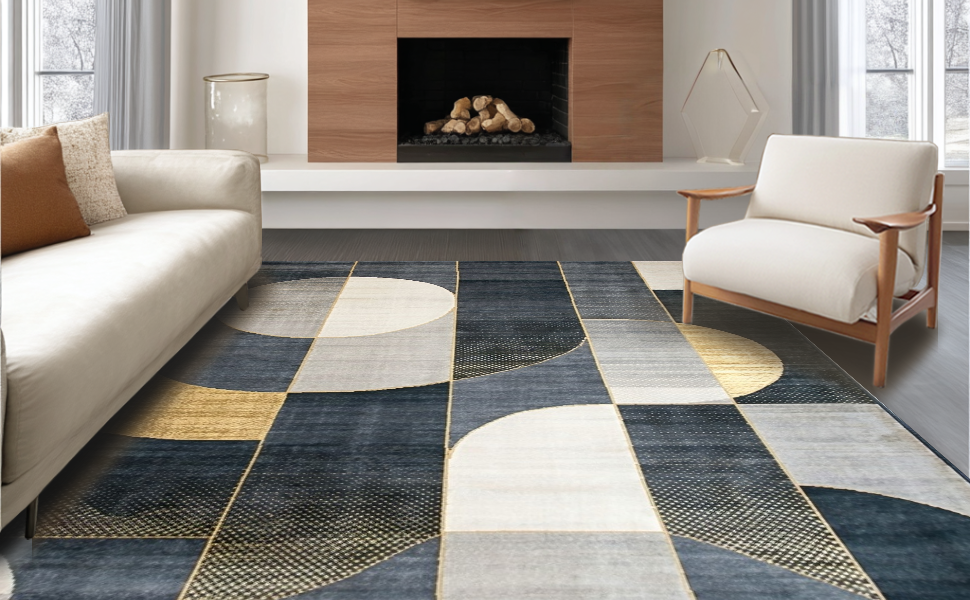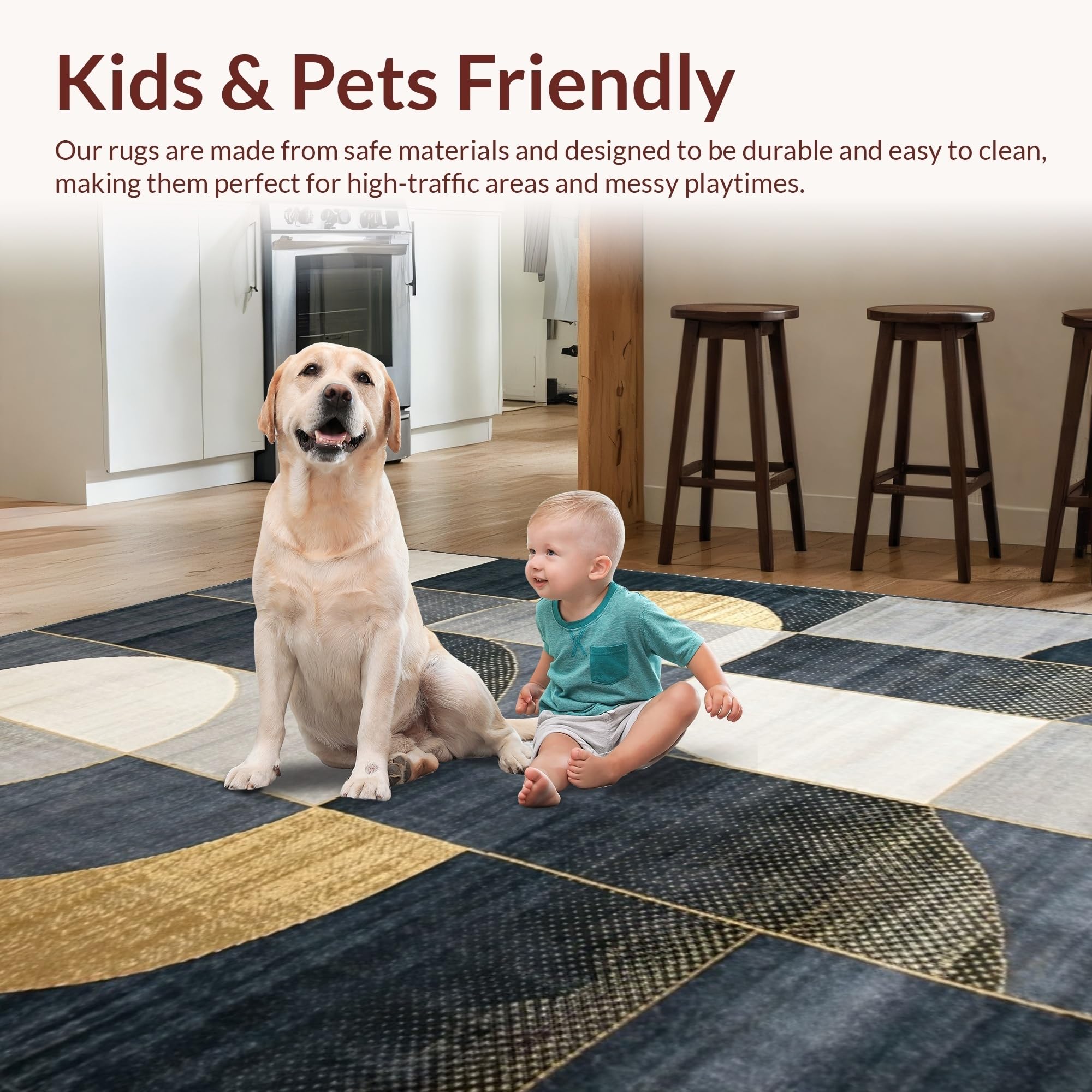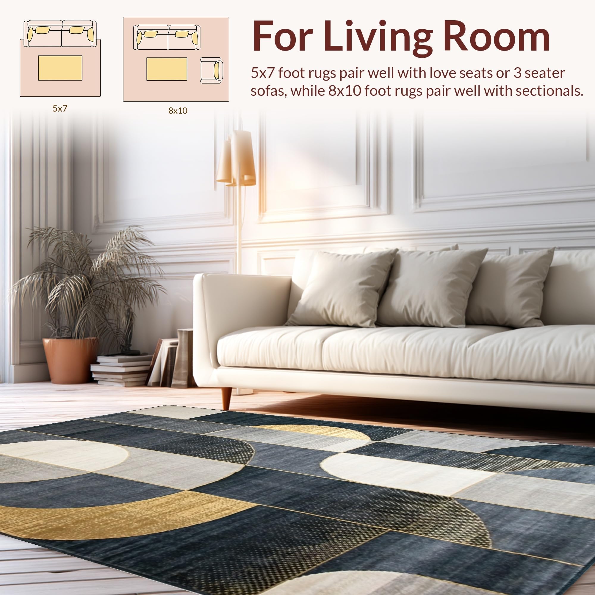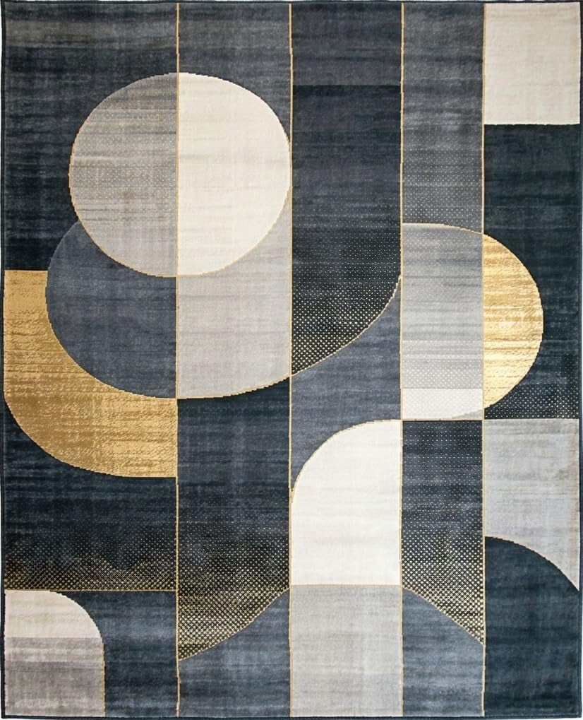Ultra Soft Area Rug, Non Slip, Stain Resistant, Washable Area Rugs for Living Room, Bedroom, Elegant Abstract Gold Accents(Gray) Overview: