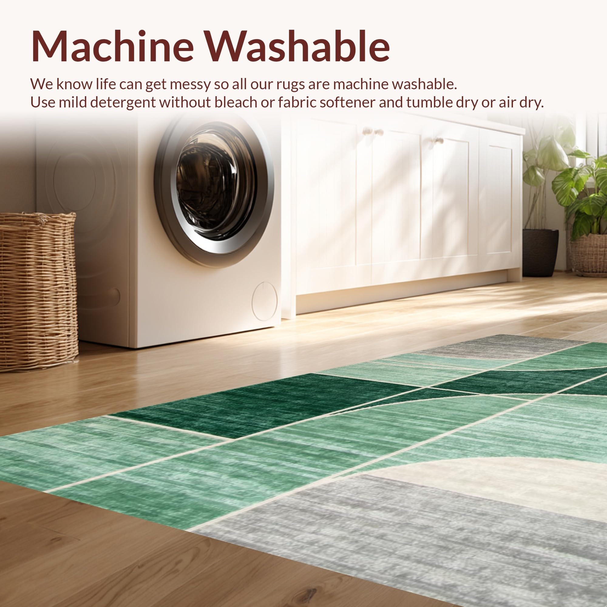 - Machine Washable: Our rugs can be easily thrown in the wash machine.