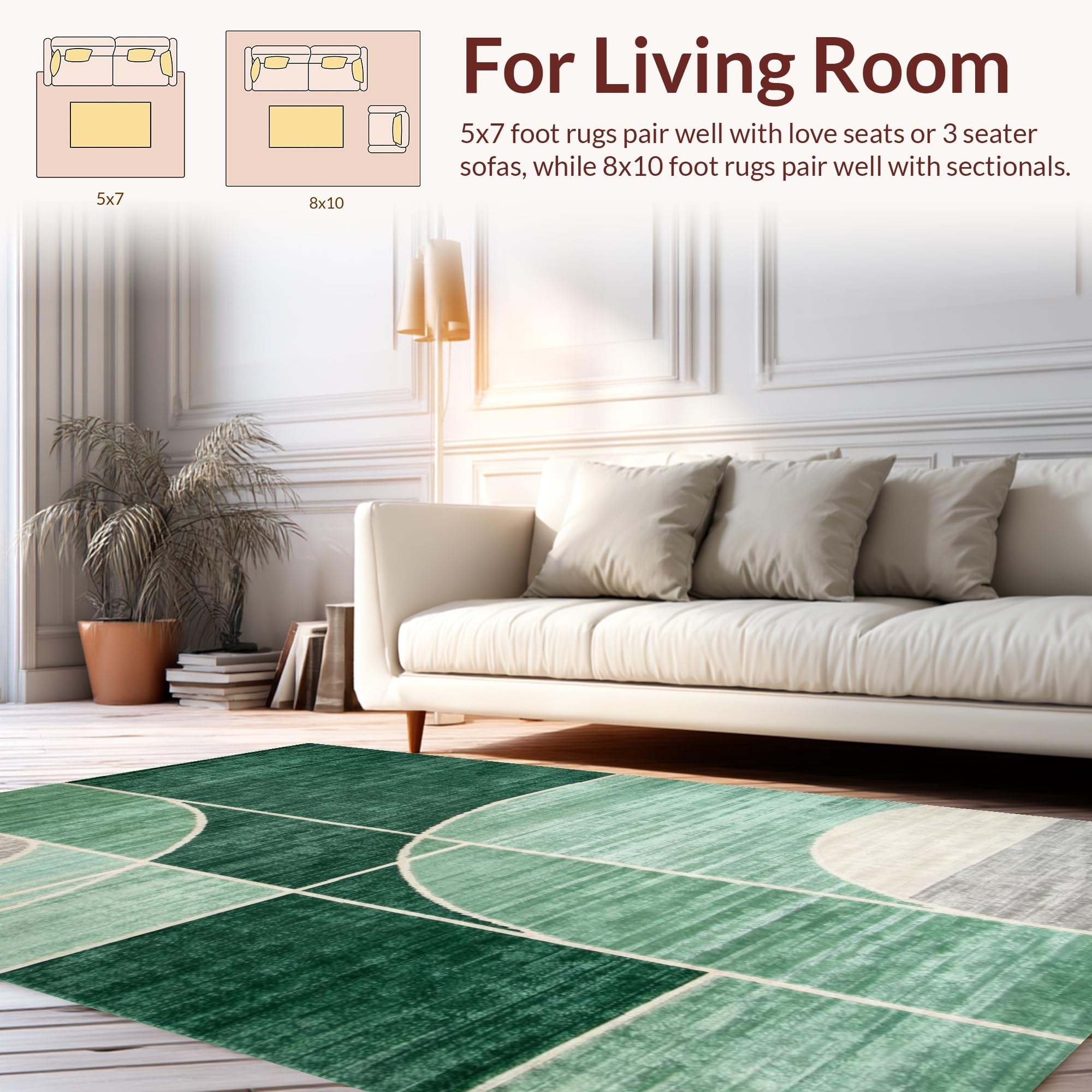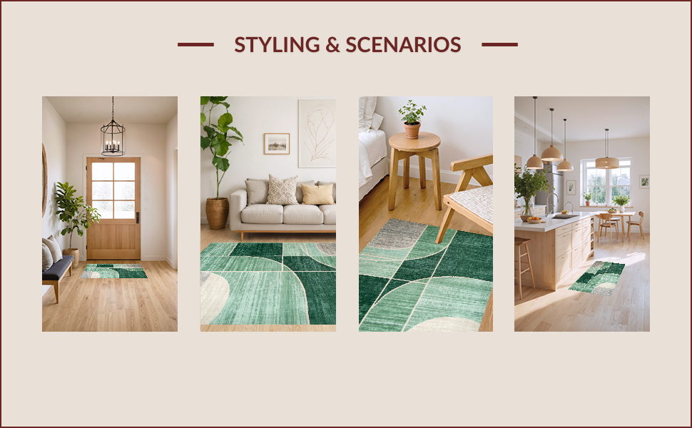 Ultra Soft Area Rug, Non Slip, Stain Resistant, Washable Area Rugs for Living Room, Bedroom, Elegant Abstract Gray Tones(Green) Overview: