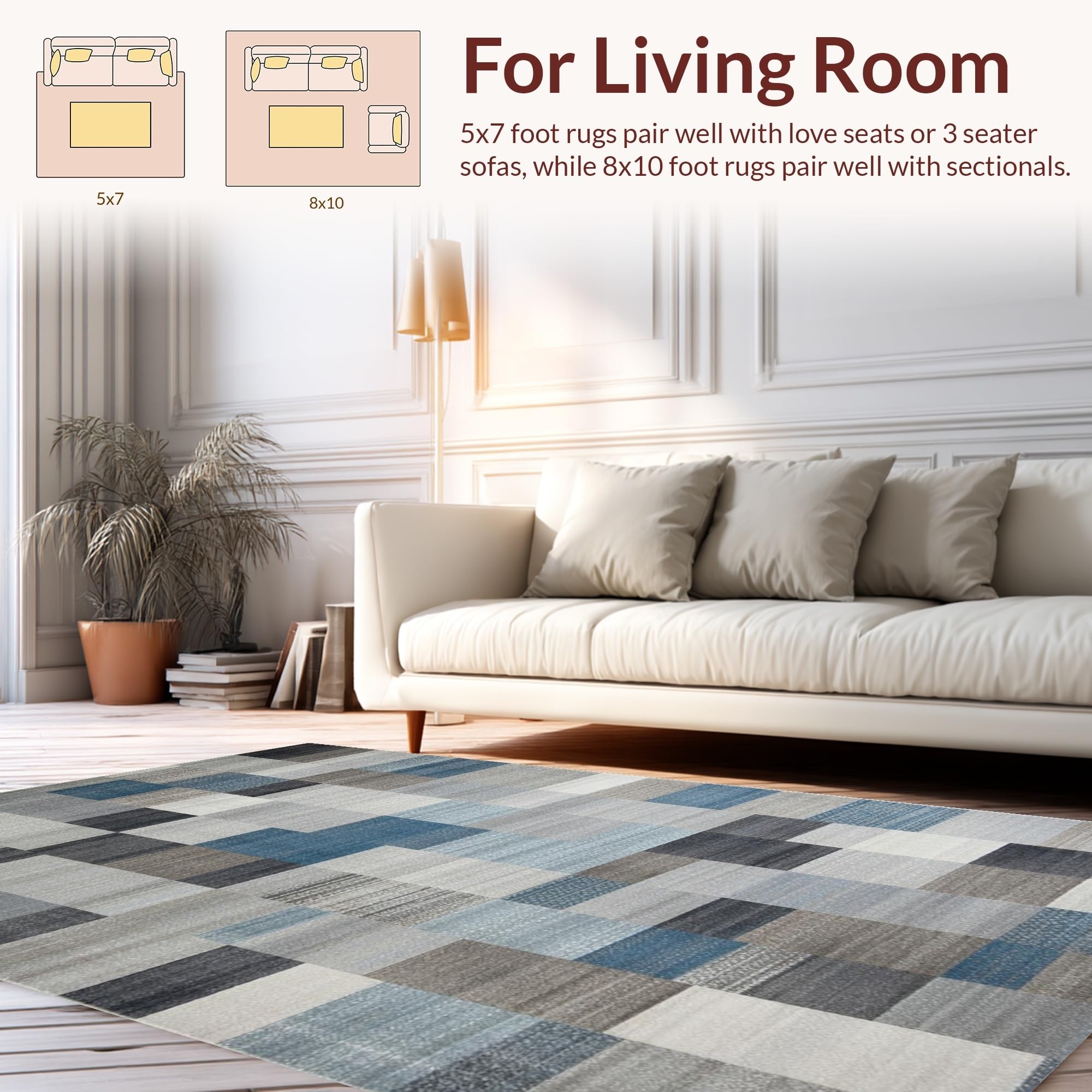 Ultra Soft Area Rug, Non Slip, Stain Resistant, Washable Area Rugs for Living Room, Bedroom, Elegant Abstract Neutral Tones(Gray) Overview: