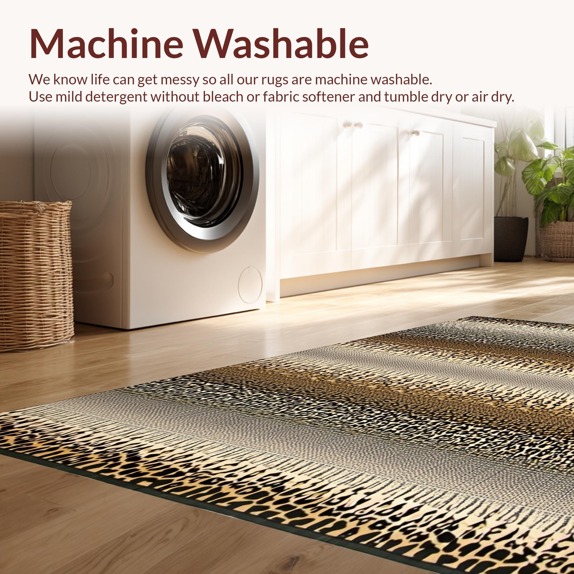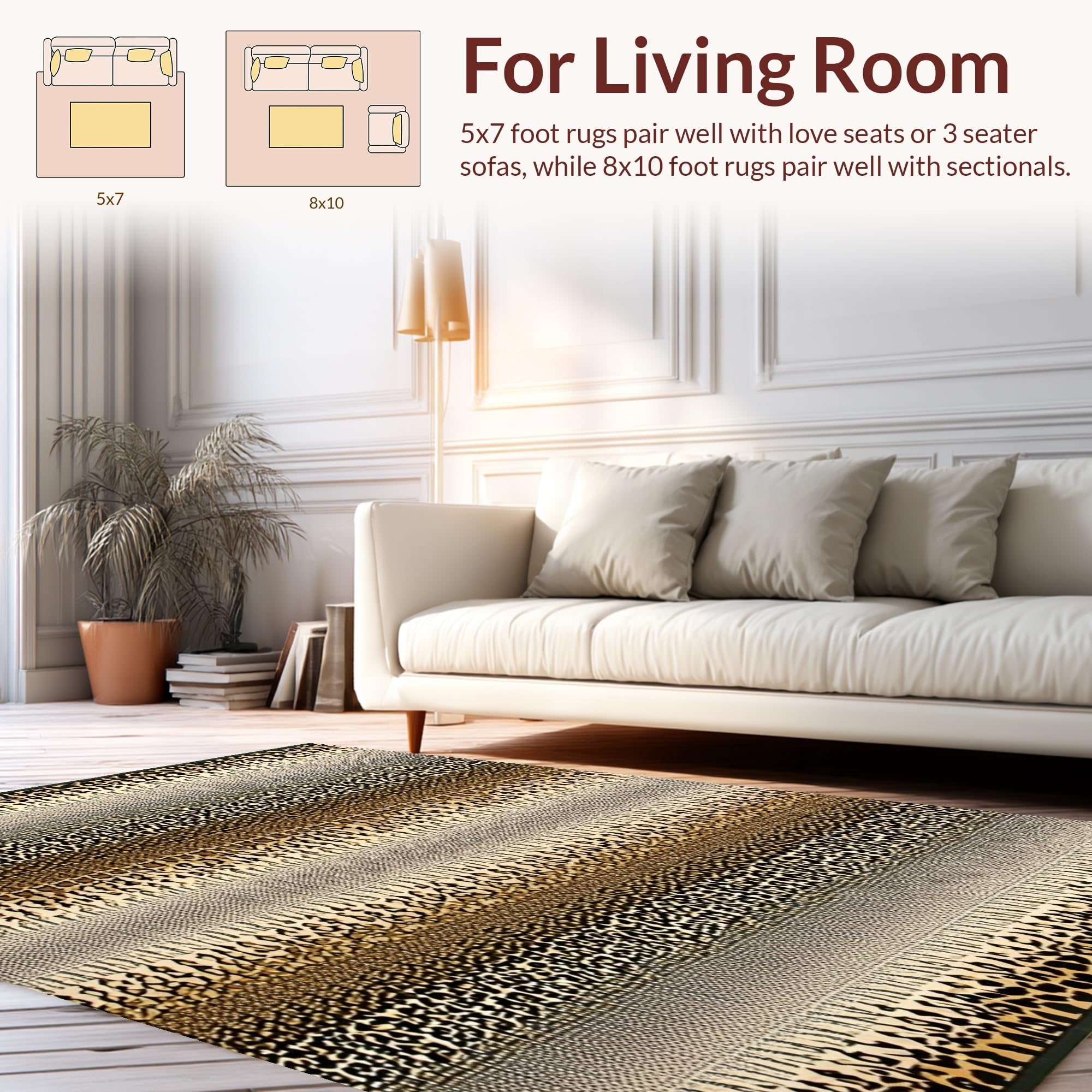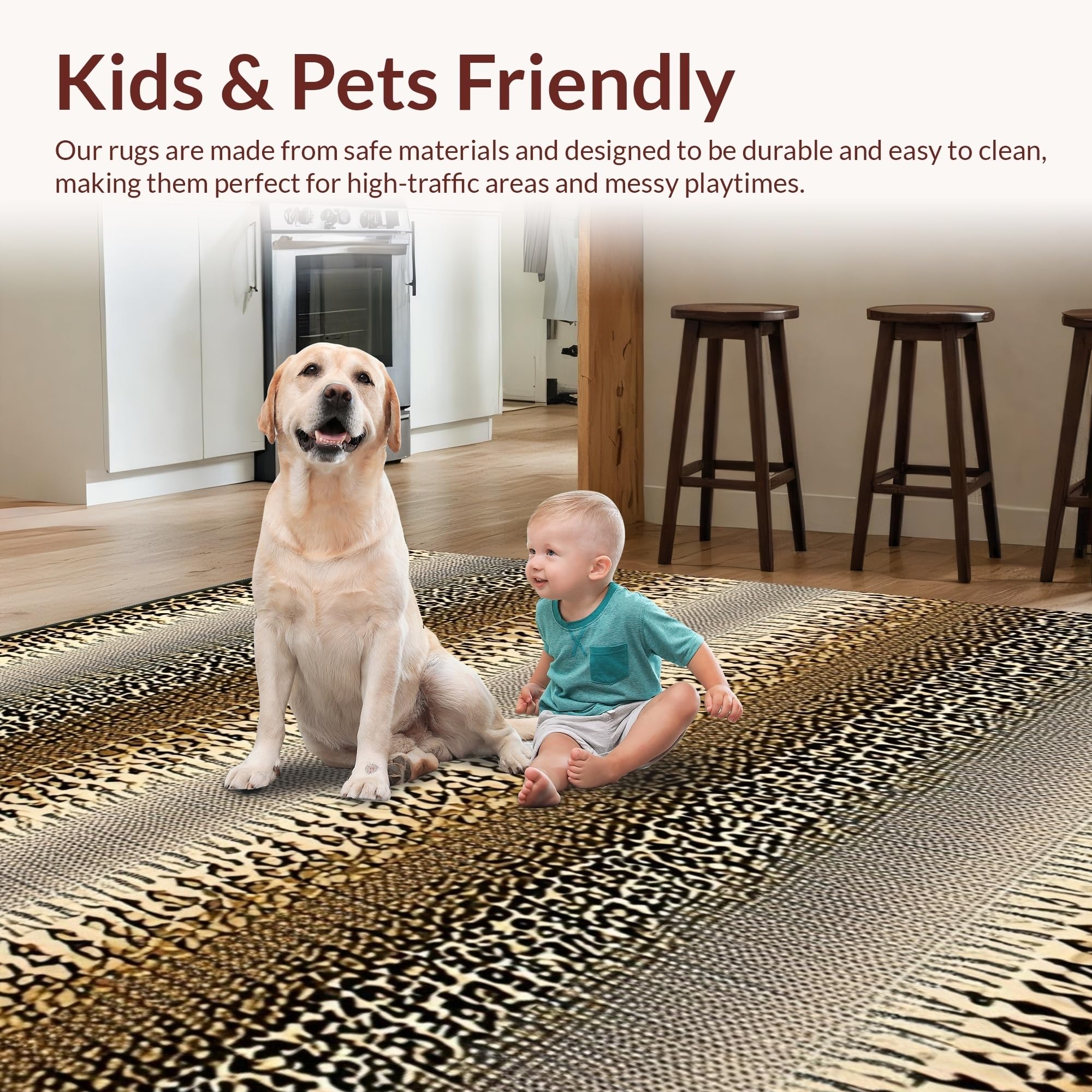 Ultra Soft Area Rug, Non Slip, Stain Resistant, Washable Area Rugs for Living Room, Bedroom, Elegant Animal Print Beige Brown Viscose Touch Design(Brown) Overview: