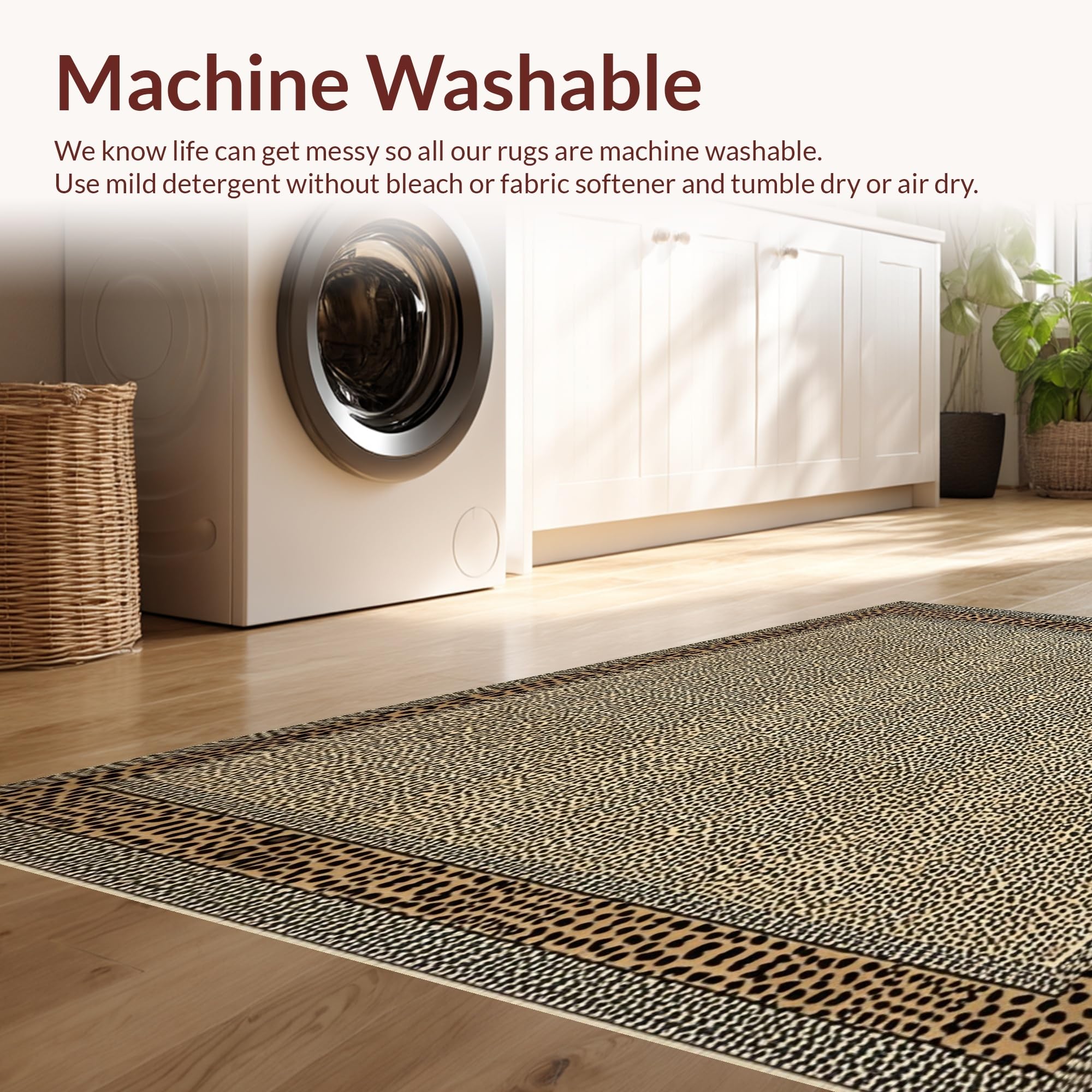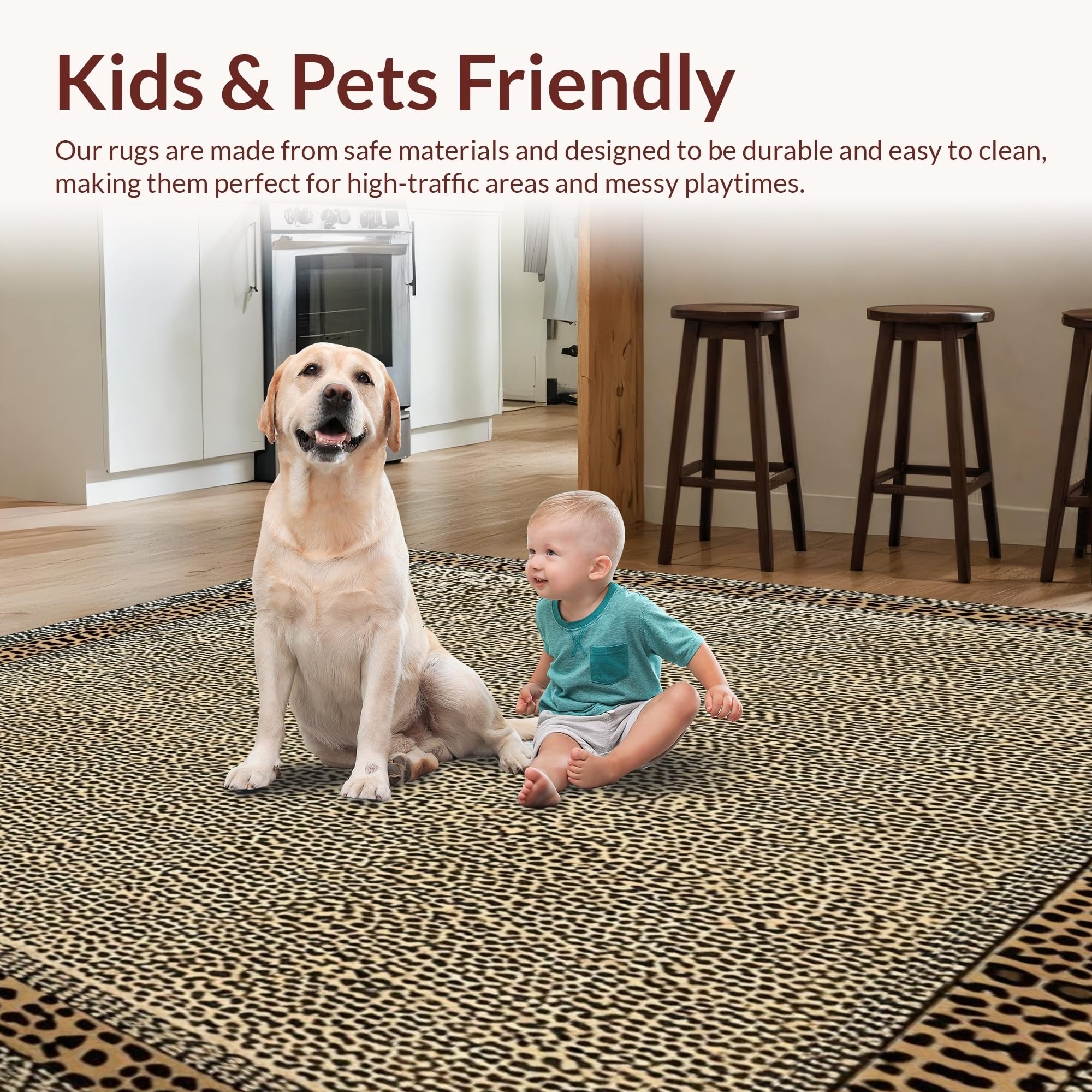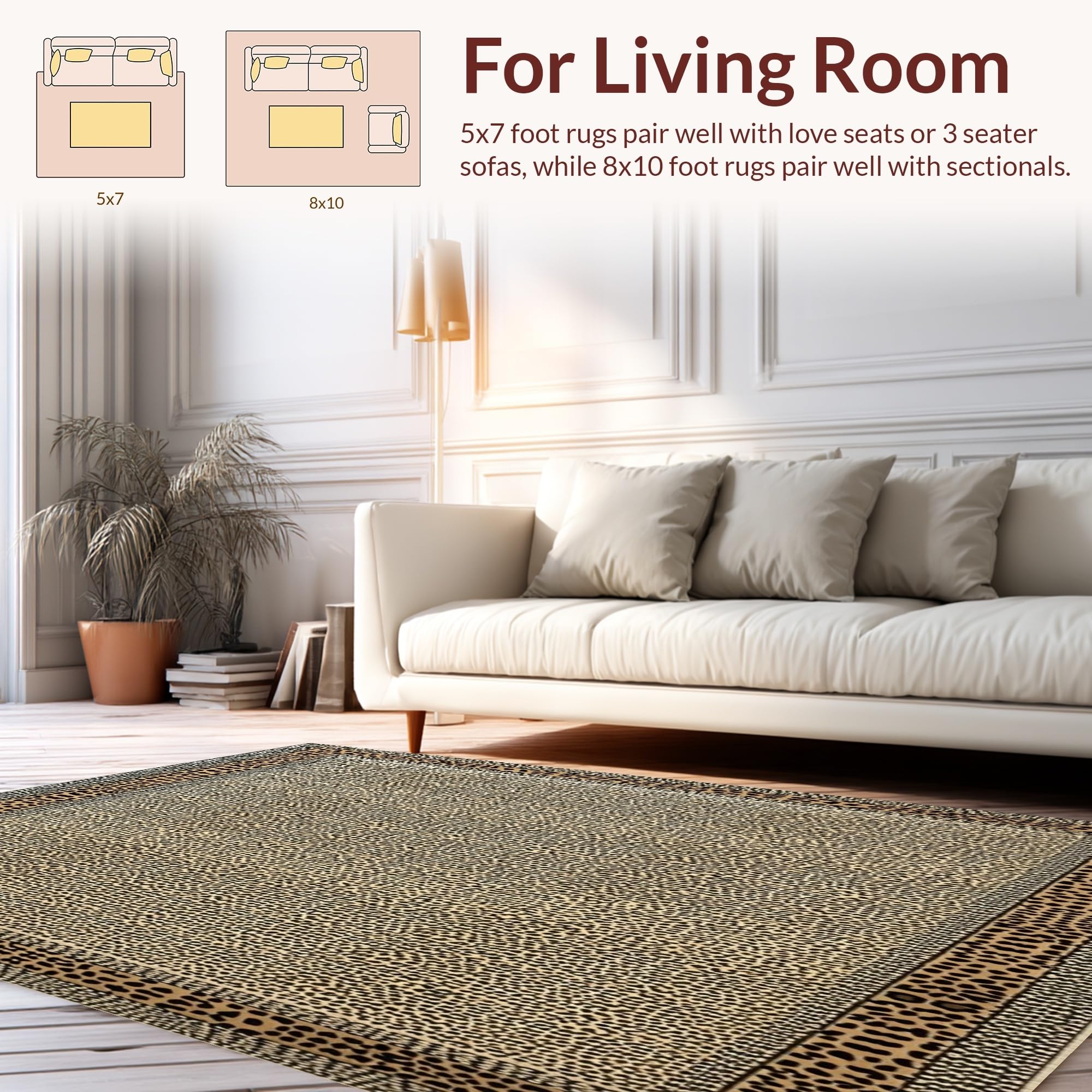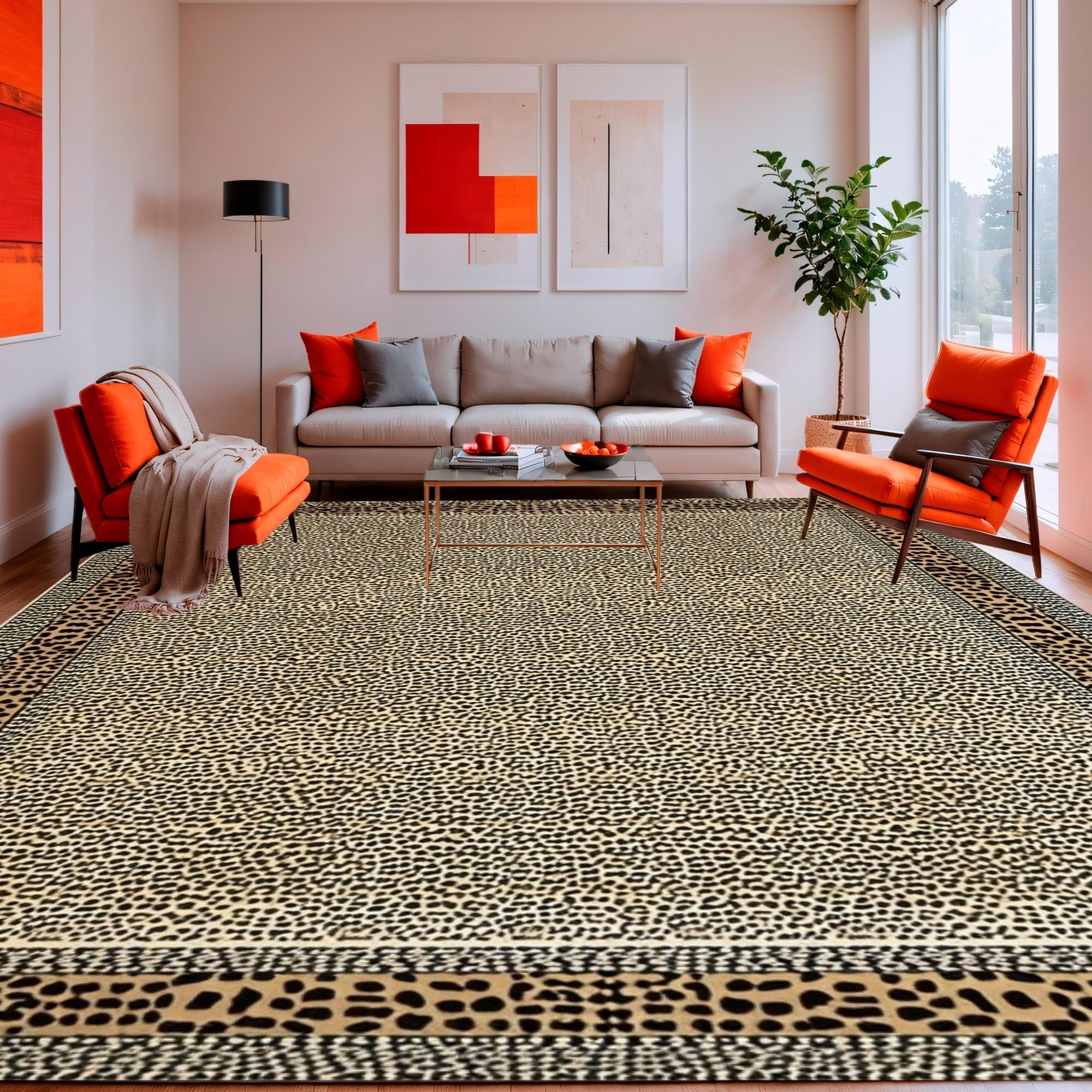 Ultra Soft Area Rug, Non Slip, Stain Resistant, Washable Area Rugs for Living Room, Bedroom, Elegant Beige Area with Spotted Animal Print Design(Beige) Overview: