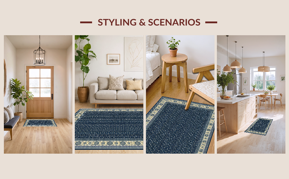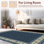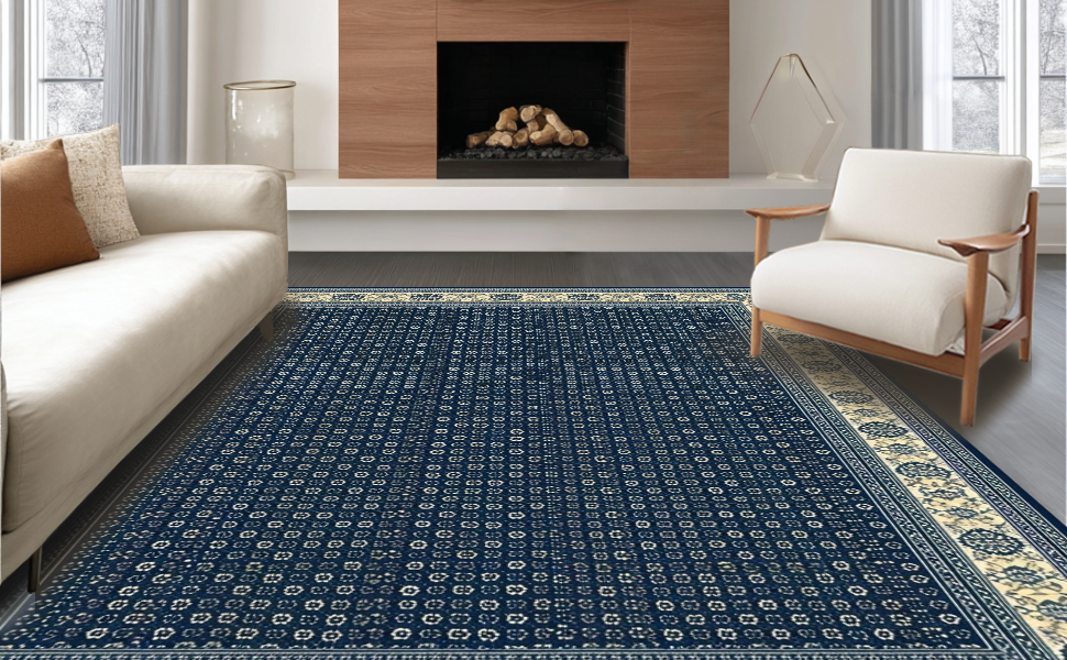 Ultra Soft Area Rug, Non Slip, Stain Resistant, Washable Area Rugs for Living Room, Bedroom, Elegant Beige Diamond Motif(Blue) Overview: