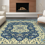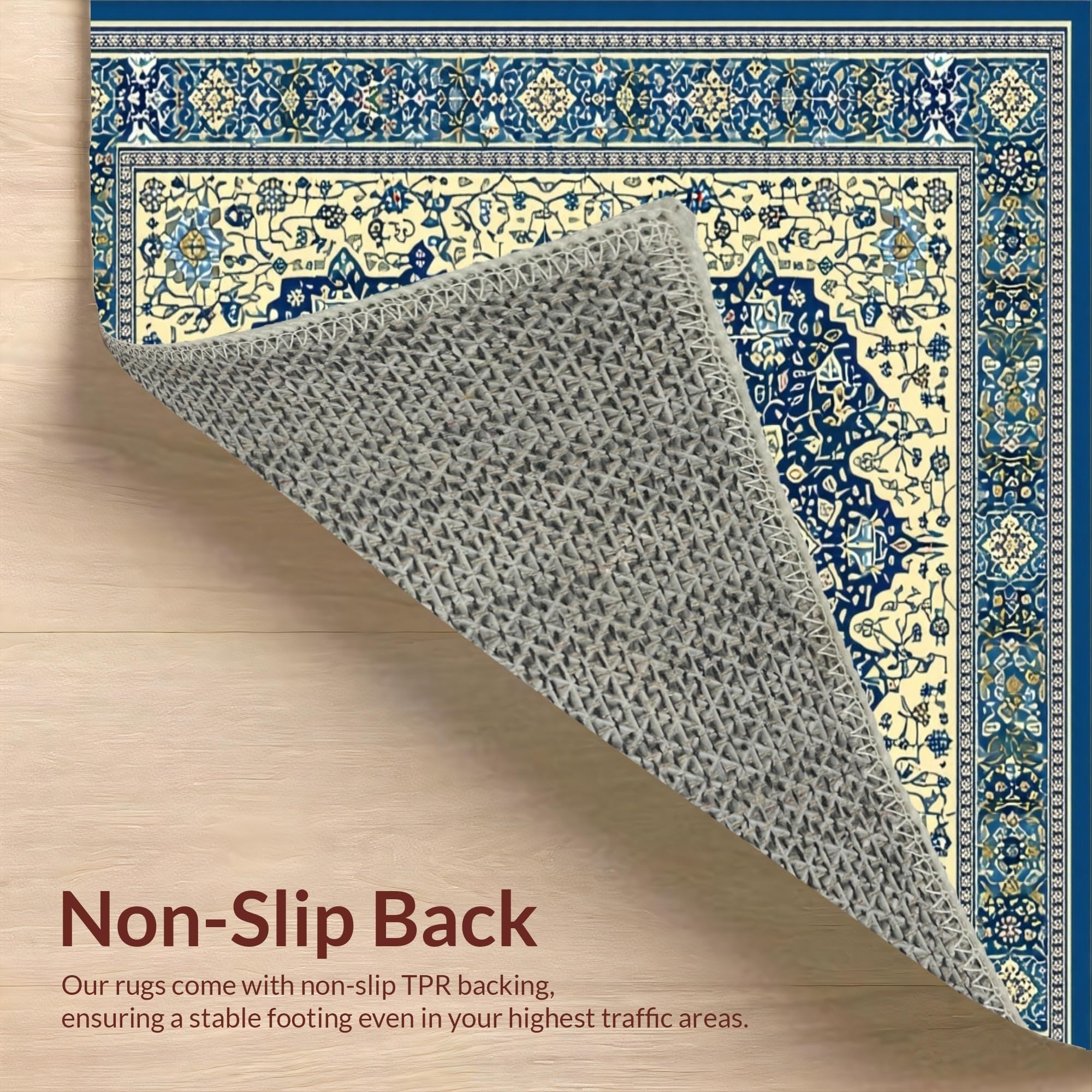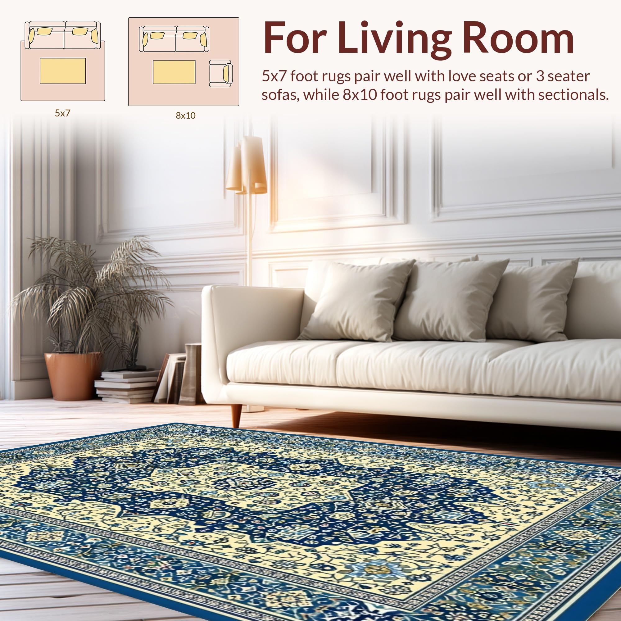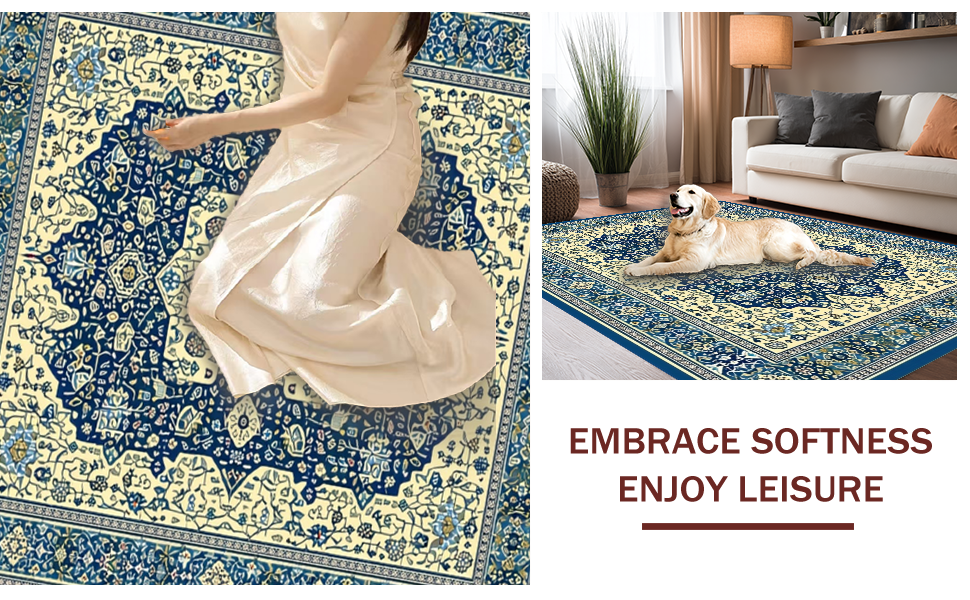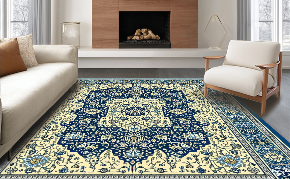 Ultra Soft Area Rug, Non Slip, Stain Resistant, Washable Area Rugs for Living Room, Bedroom, Elegant Beige Geometric Arrangement(Blue) Overview: