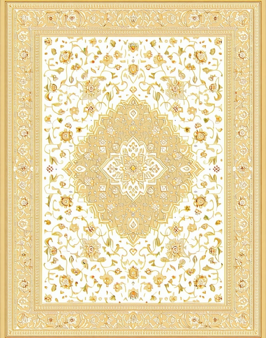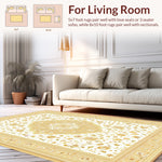 Flatwoven High Traffic Area Rug, Elegant Beige Medallion Artwork, Non Slip, Stain Resistant, Washable Area Rugs for Living Room, Bedroom (Beige) Overview: