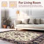 Ultra Soft Area Rug, Non Slip, Stain Resistant, Washable Area Rugs for Living Room, Bedroom, Elegant Beige Oriental Runner Featuring Classic Floral Medallion Motifs(Ivory) Overview: