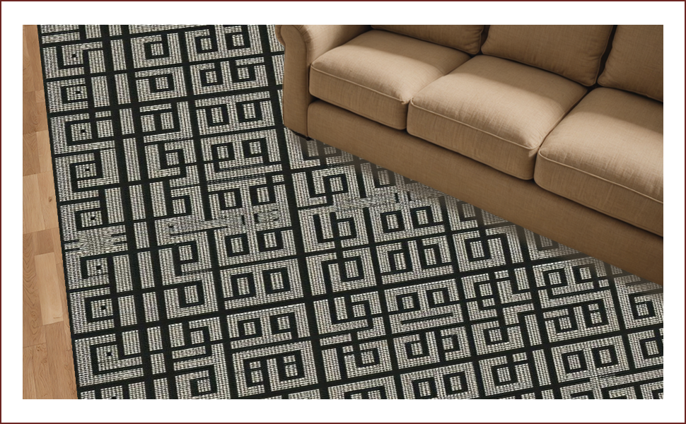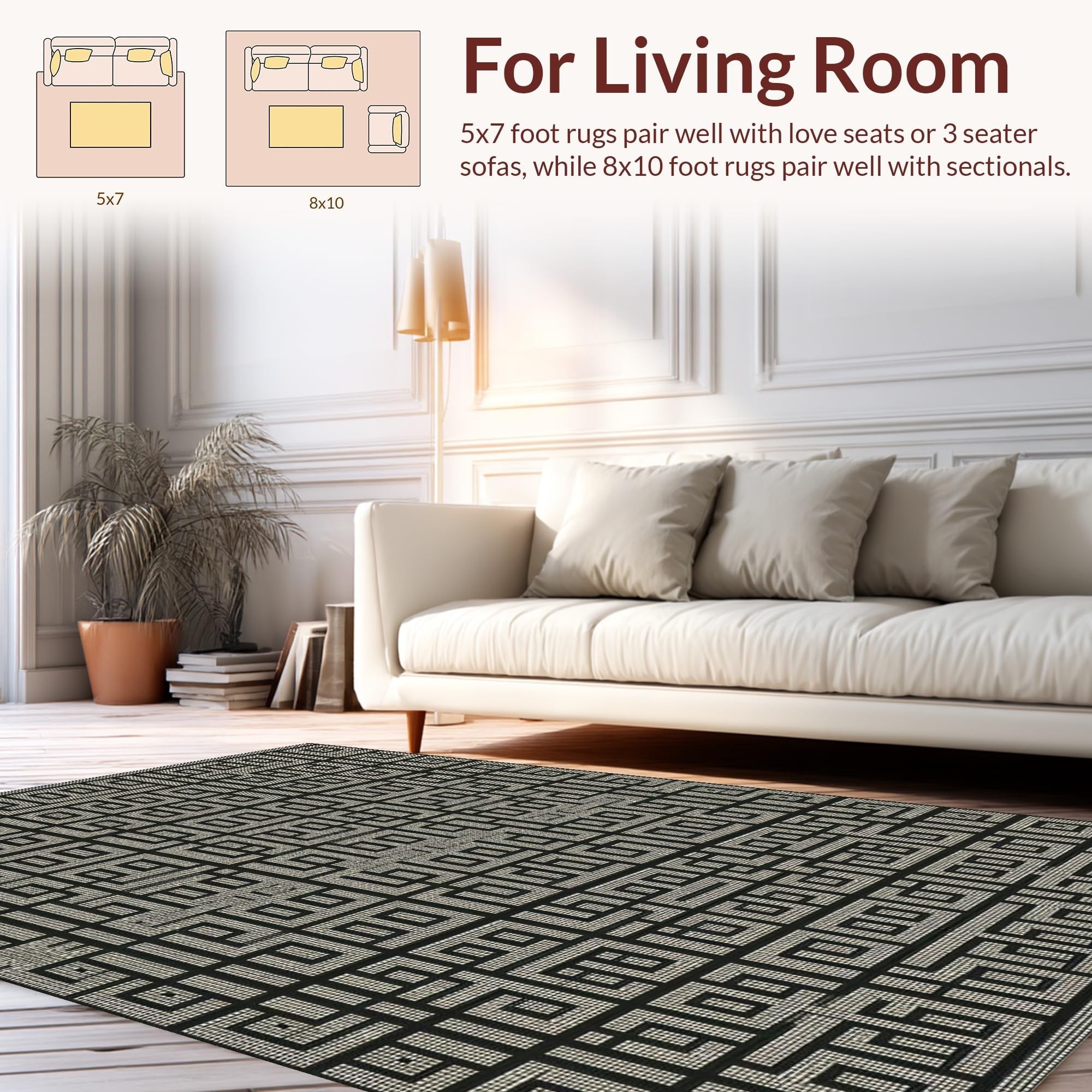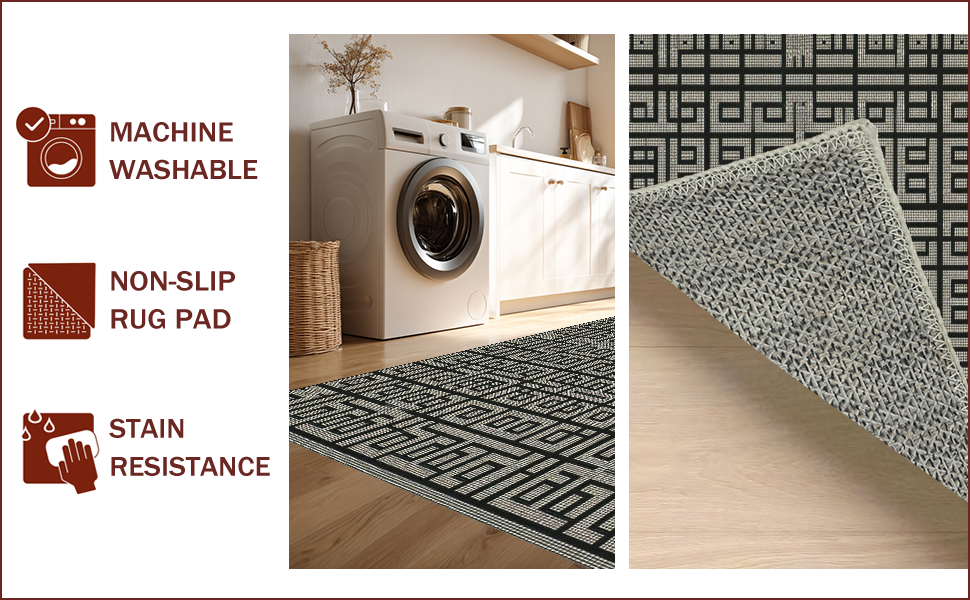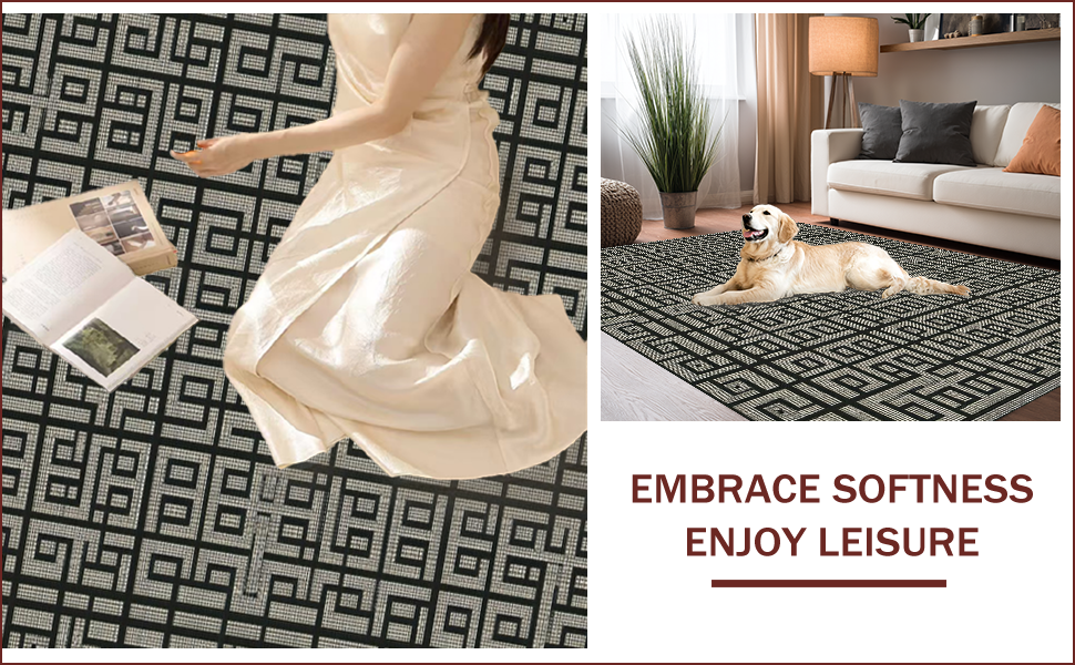 Ultra Soft Area Rug, Non Slip, Stain Resistant, Washable Area Rugs for Living Room, Bedroom, Elegant Black and Ivory Geometric Harmony(Black) Overview: