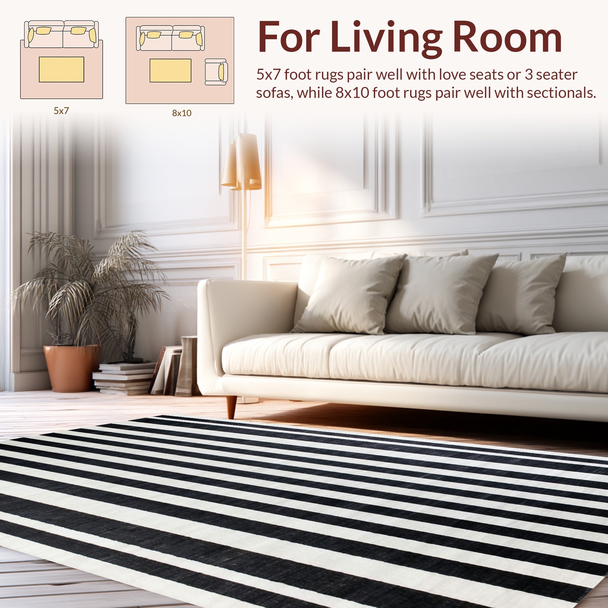 Flatwoven High Traffic Area Rug, Elegant Black and White Stripe Floor Covering, Non Slip, Stain Resistant, Washable Area Rugs for Living Room, Bedroom (Black) Overview:
