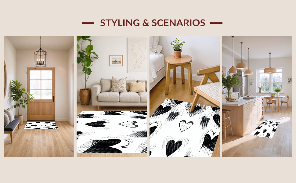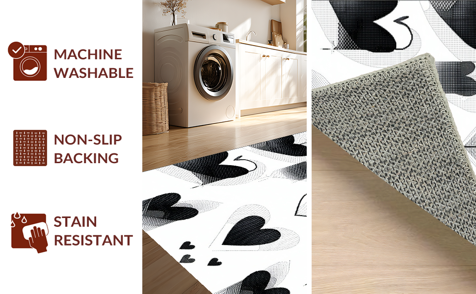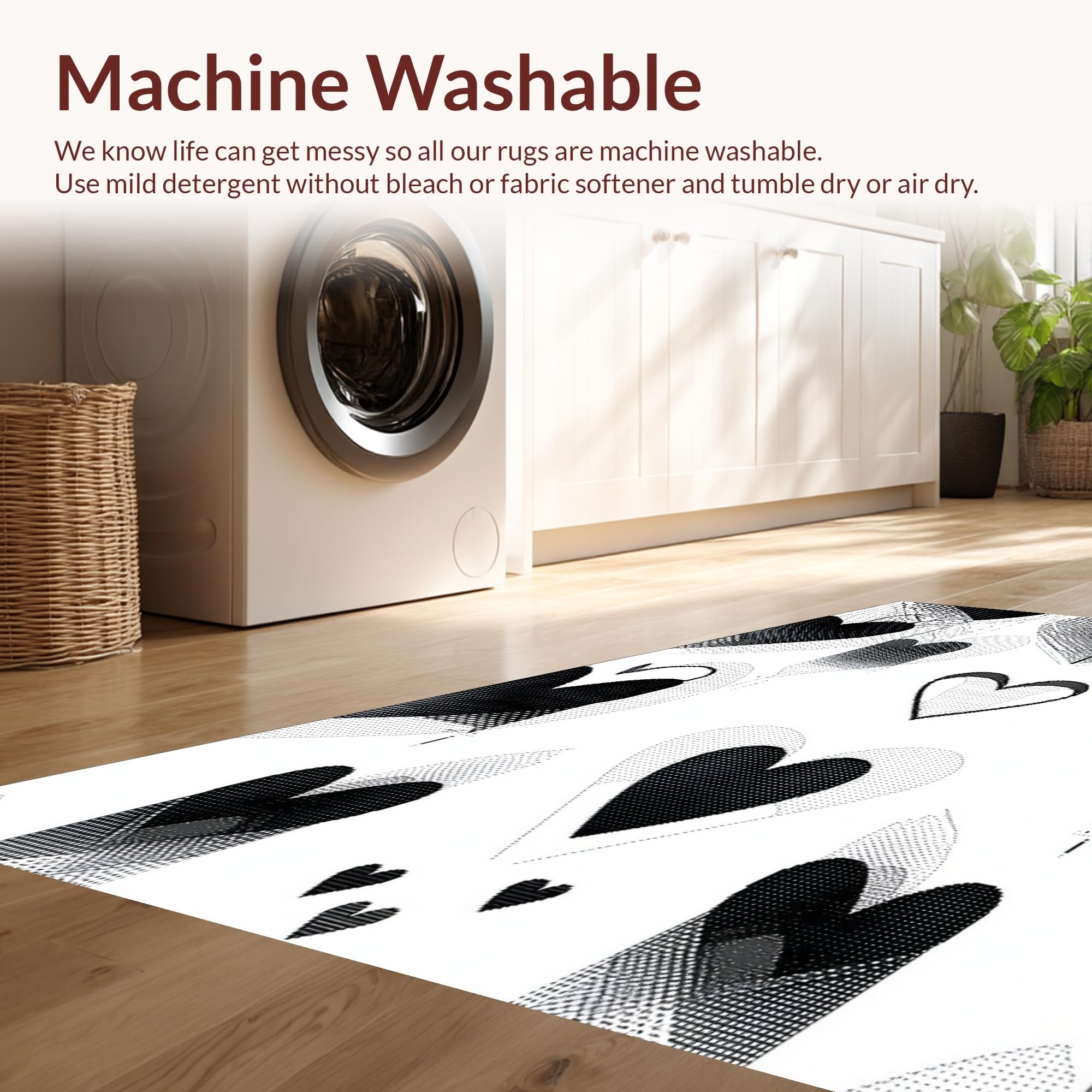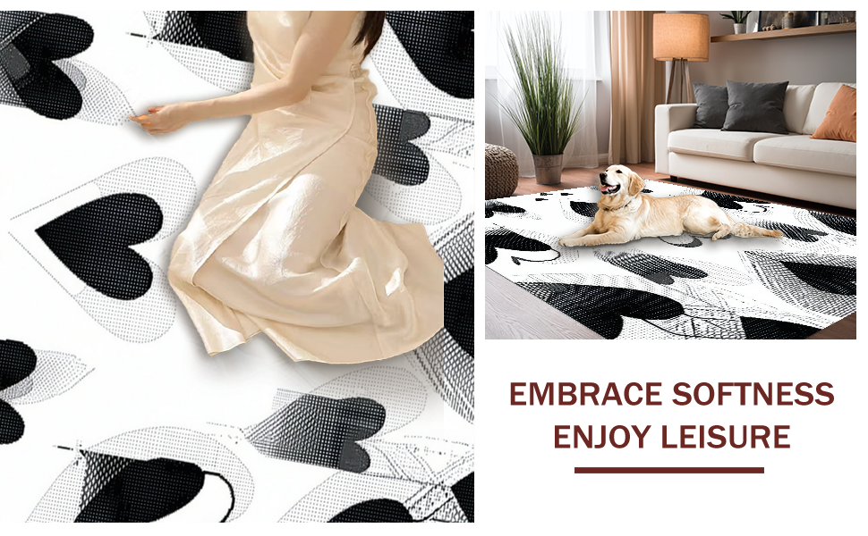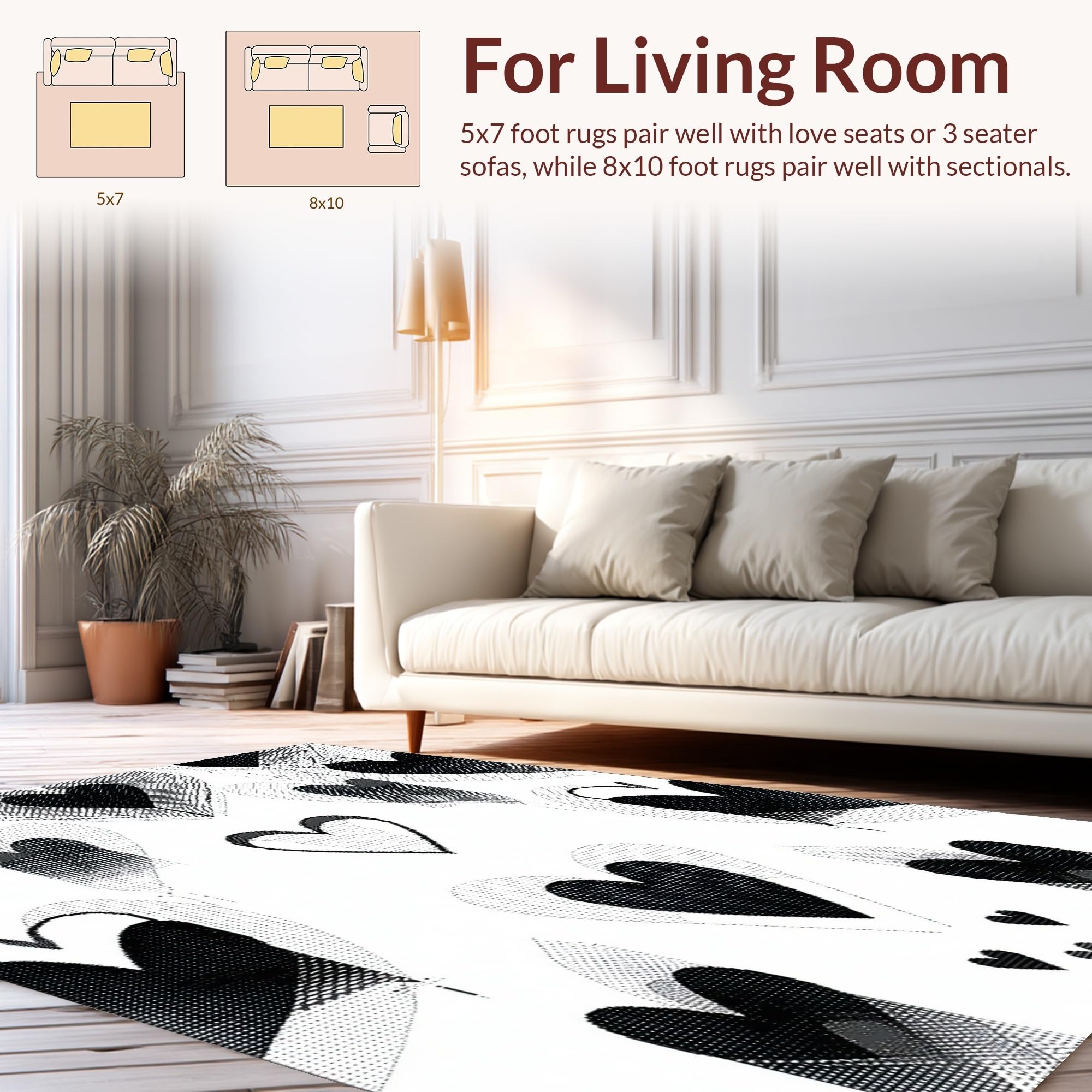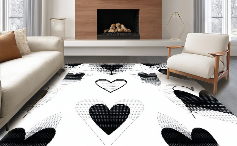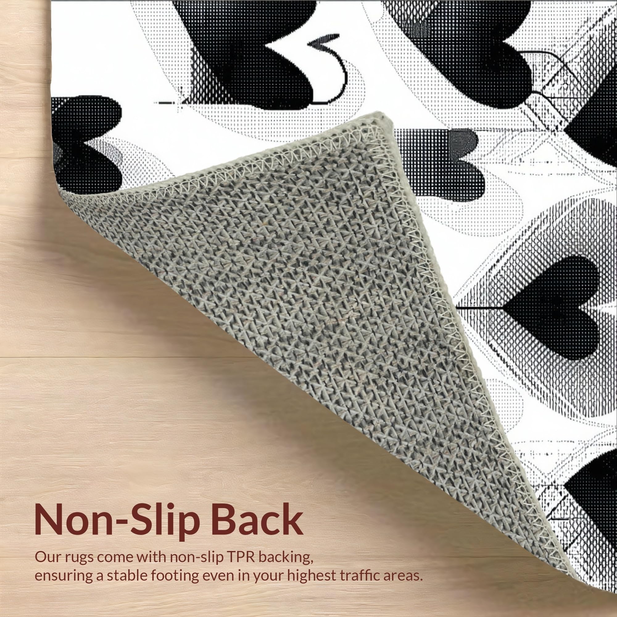 Ultra Soft Area Rug, Non Slip, Stain Resistant, Washable Area Rugs for Living Room, Bedroom, Elegant Black Heart Silhouette(Black) Overview: