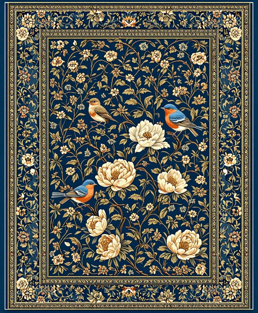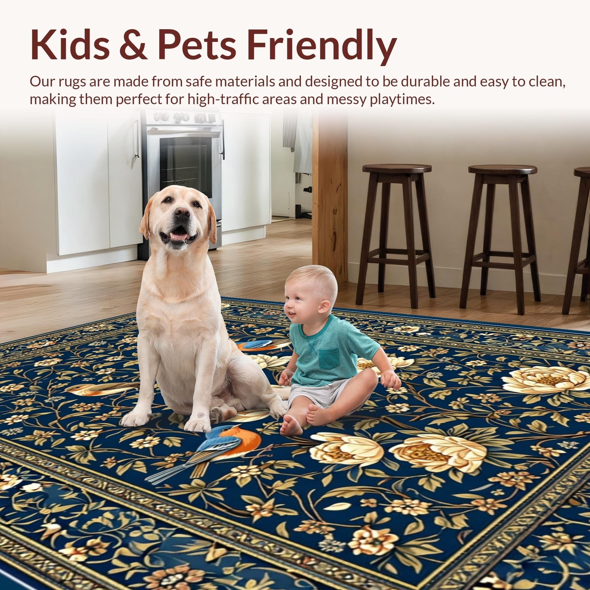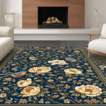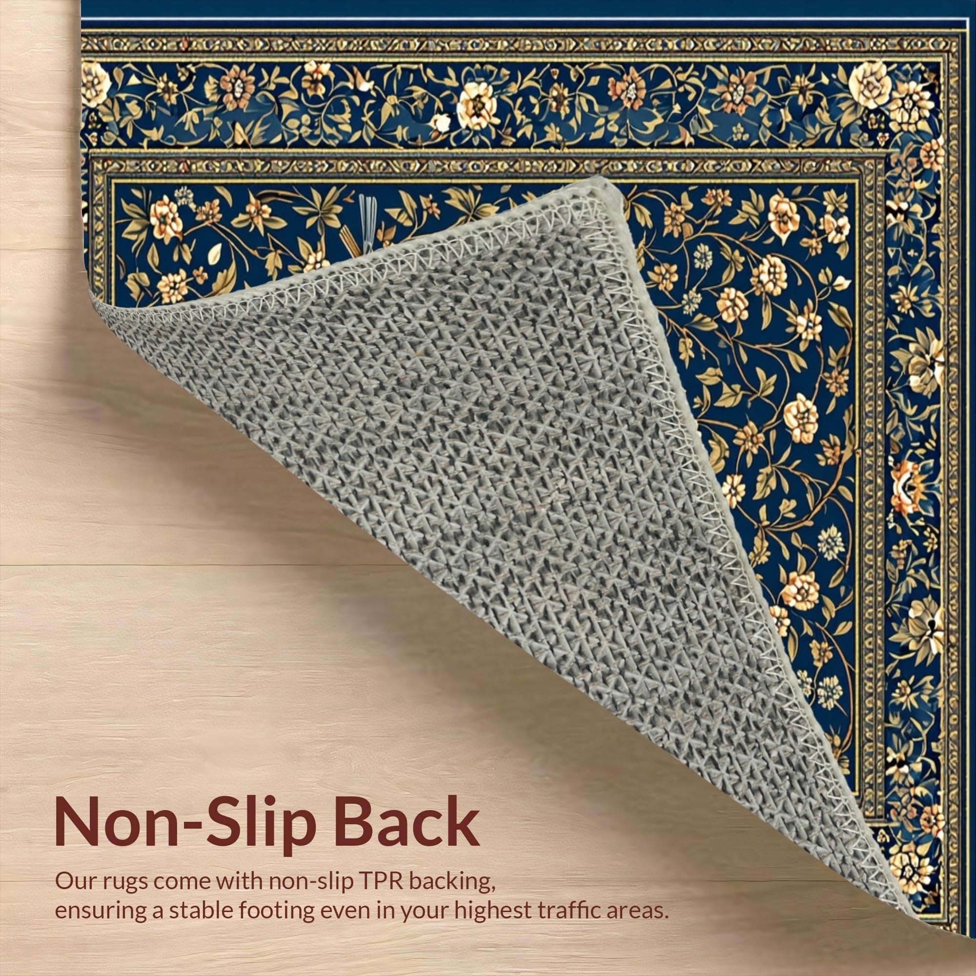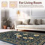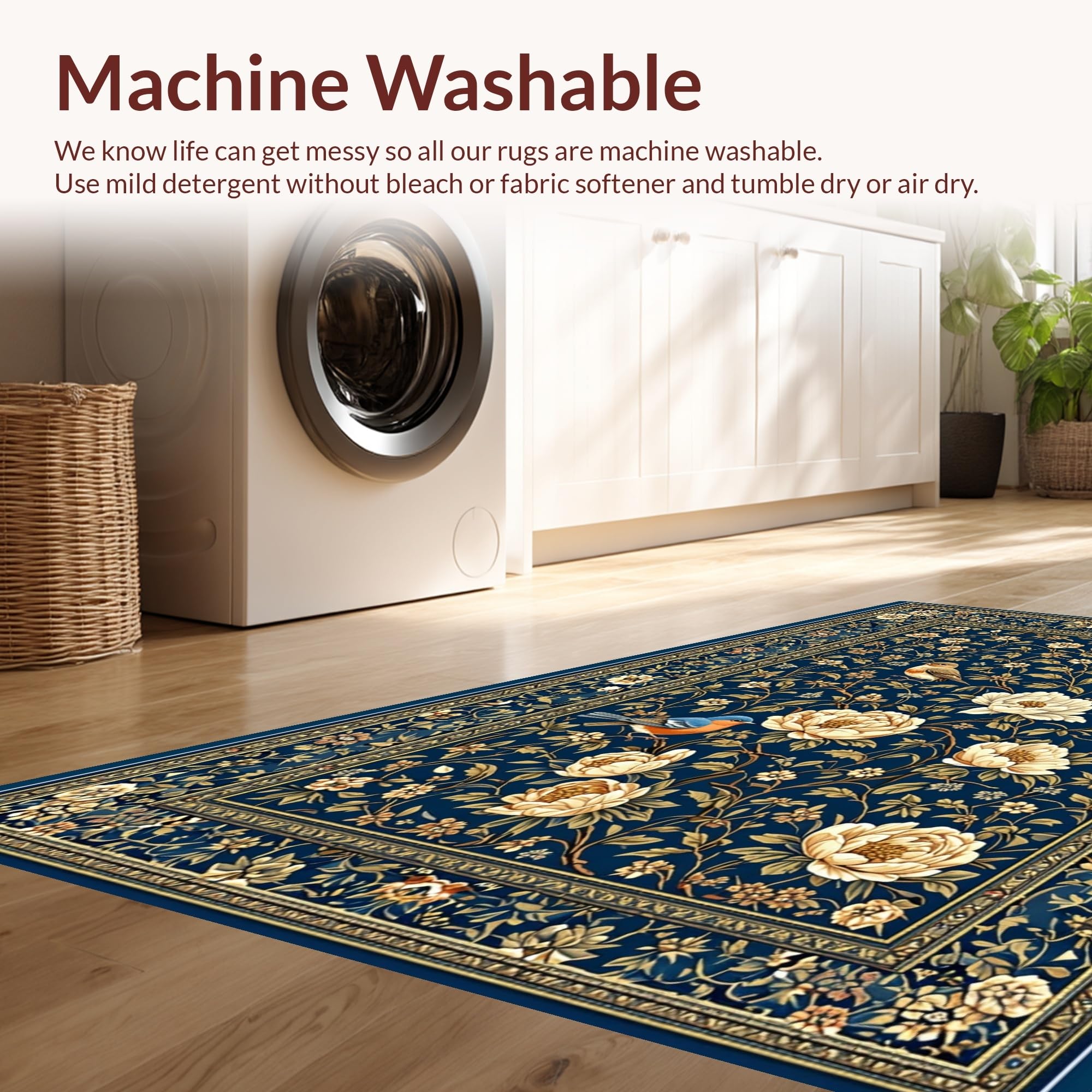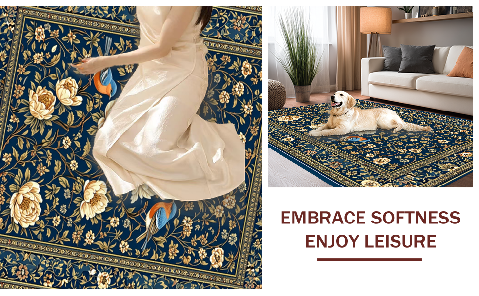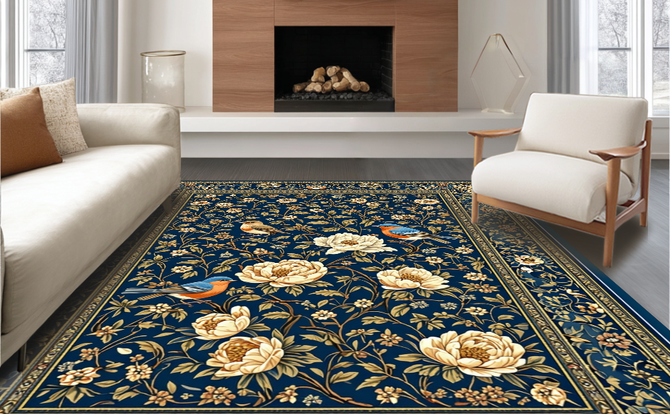 Ultra Soft Area Rug, Non Slip, Stain Resistant, Washable Area Rugs for Living Room, Bedroom, Elegant Blue-Hued Botanical Bliss(Blue) Overview: