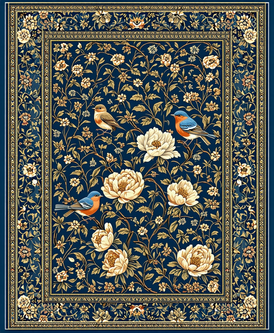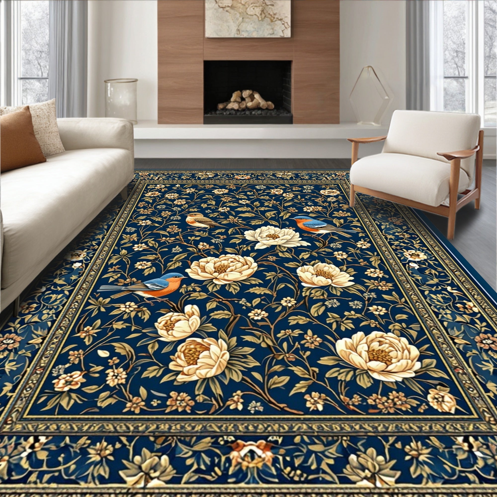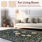 Flatwoven High Traffic Area Rug, Elegant Hued Botanical Bliss, Non Slip, Stain Resistant, Washable Area Rugs for Living Room, Bedroom (Blue) Overview: