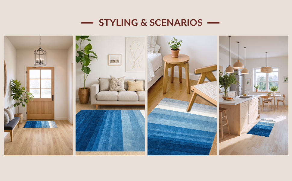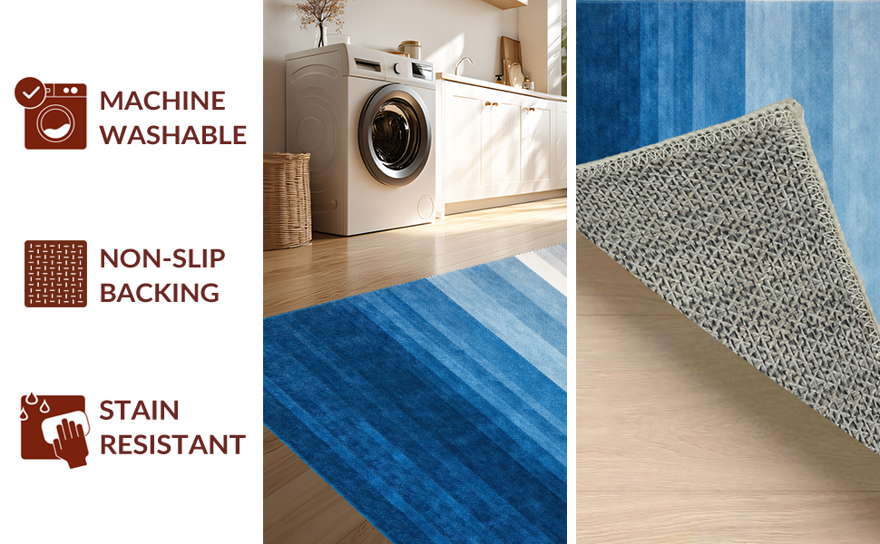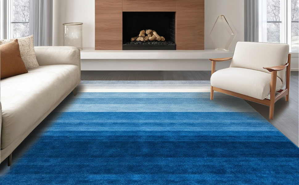 Ultra Soft Area Rug, Non Slip, Stain Resistant, Washable Area Rugs for Living Room, Bedroom, Elegant Blue Ombre Gradient(Blue) Overview: