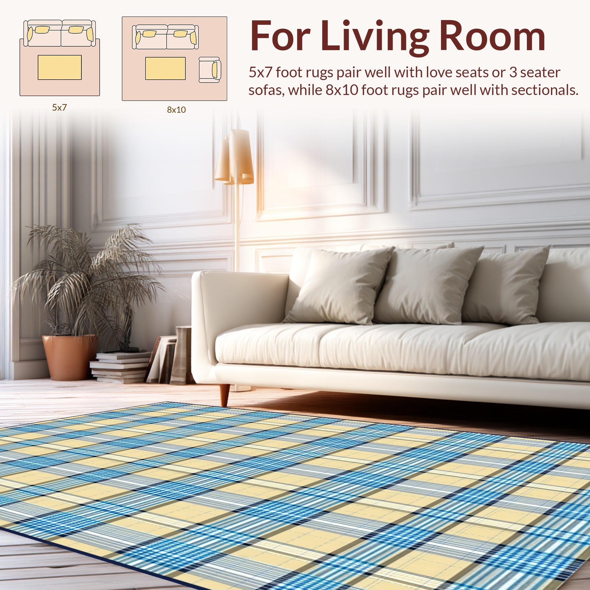 Flatwoven High Traffic Area Rug, Elegant Tone Checkered Fabric, Non Slip, Stain Resistant, Washable Area Rugs for Living Room, Bedroom (Beige) Overview: