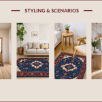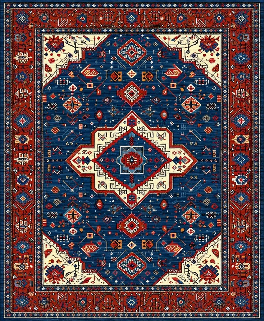 Ultra Soft Area Rug, Non Slip, Stain Resistant, Washable Area Rugs for Living Room, Bedroom, Elegant Blue Toned Geometric Elegance(Red) Overview:
