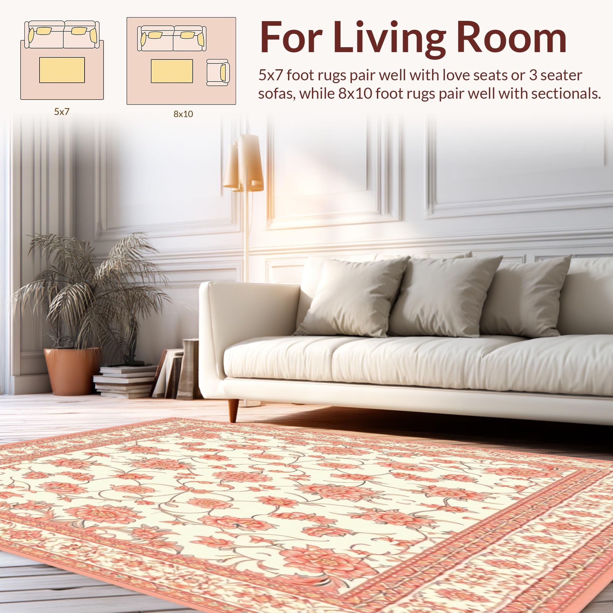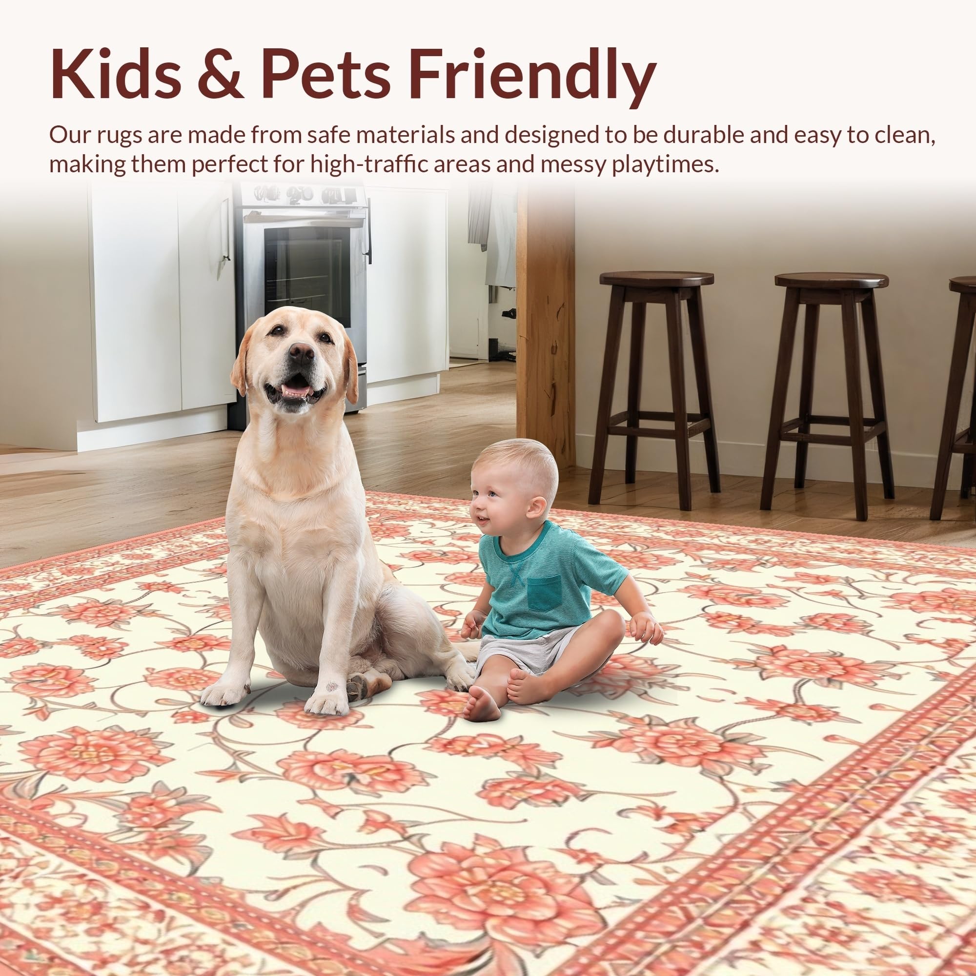 Ultra Soft Area Rug, Non Slip, Stain Resistant, Washable Area Rugs for Living Room, Bedroom, Elegant Boho Design Studio(Ivory) Overview: