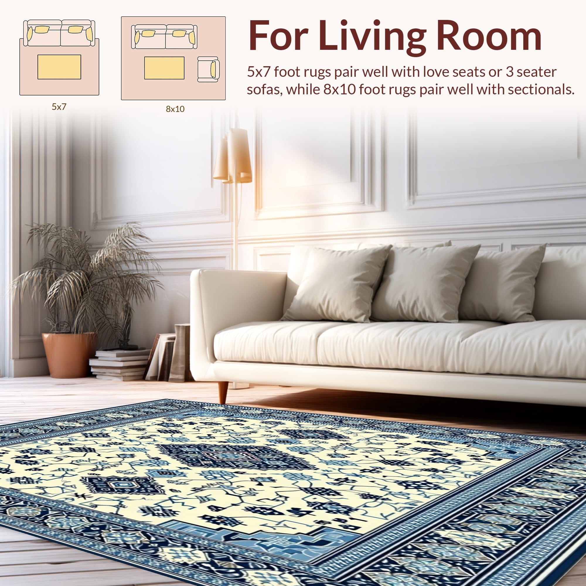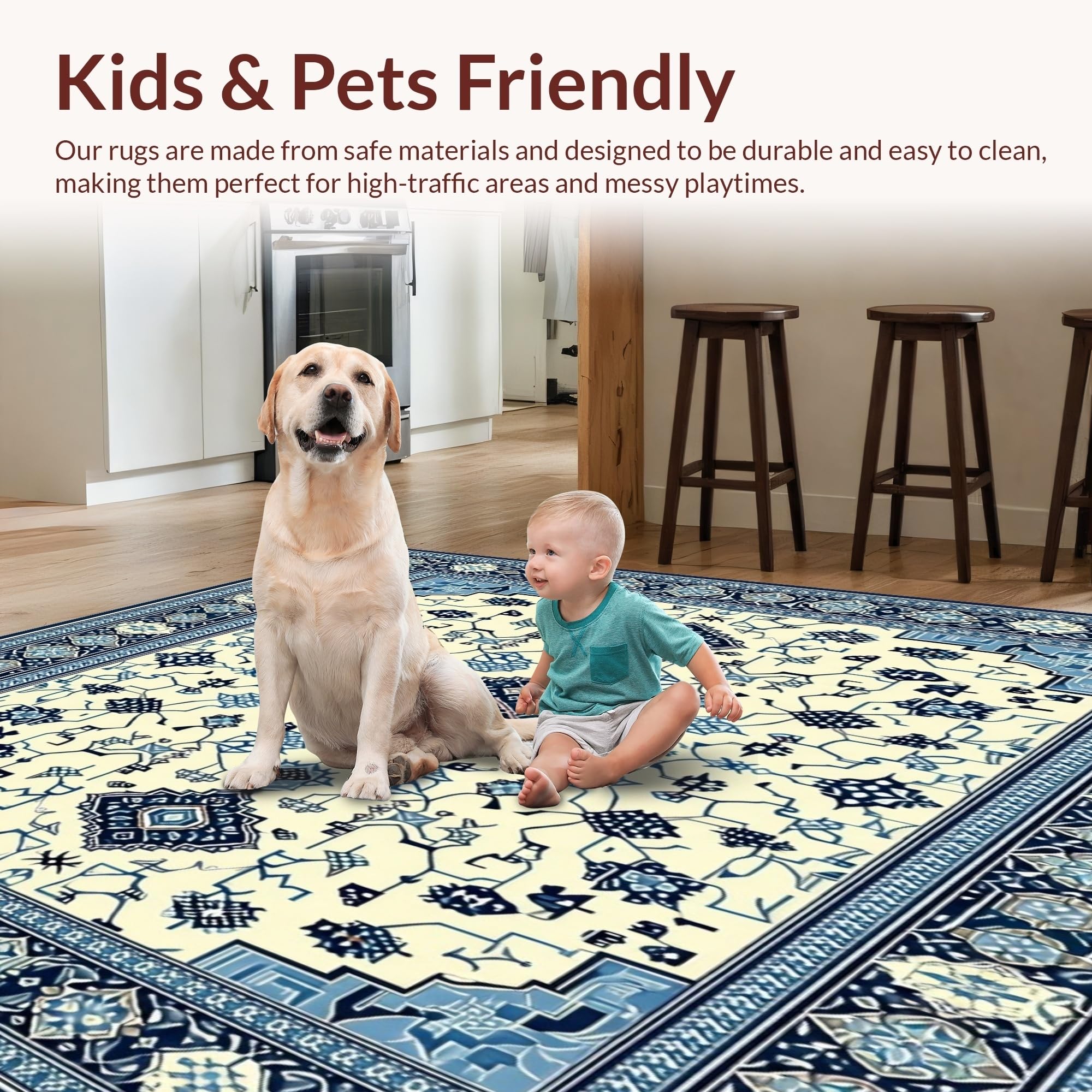 Ultra Soft Area Rug, Non Slip, Stain Resistant, Washable Area Rugs for Living Room, Bedroom, Elegant Boho Trellis Area(Ivory) Overview: