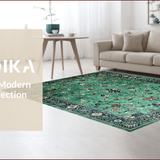 Ultra Soft Area Rug, Non Slip, Stain Resistant, Washable Area Rugs for Living Room, Bedroom, Elegant Botanical Tiled Arrangement(Green) Overview: