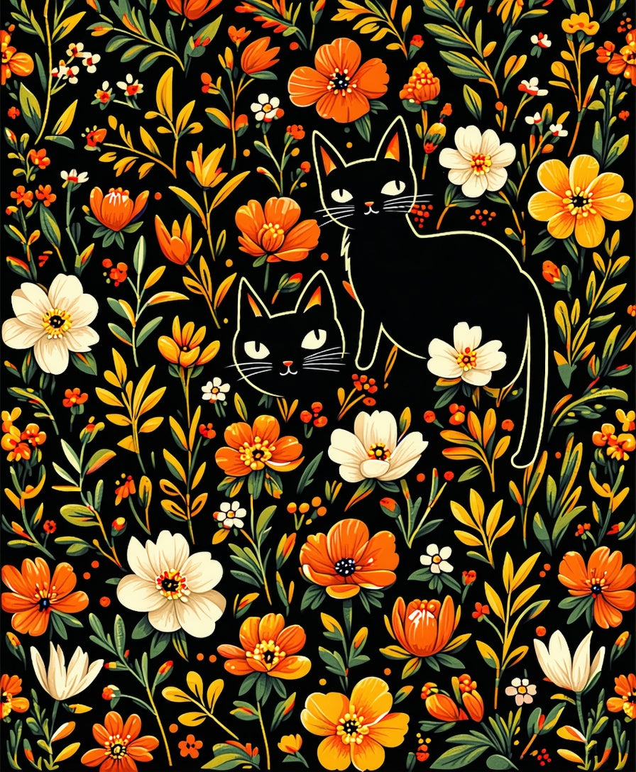 Elegant Cat and Floral(Black)