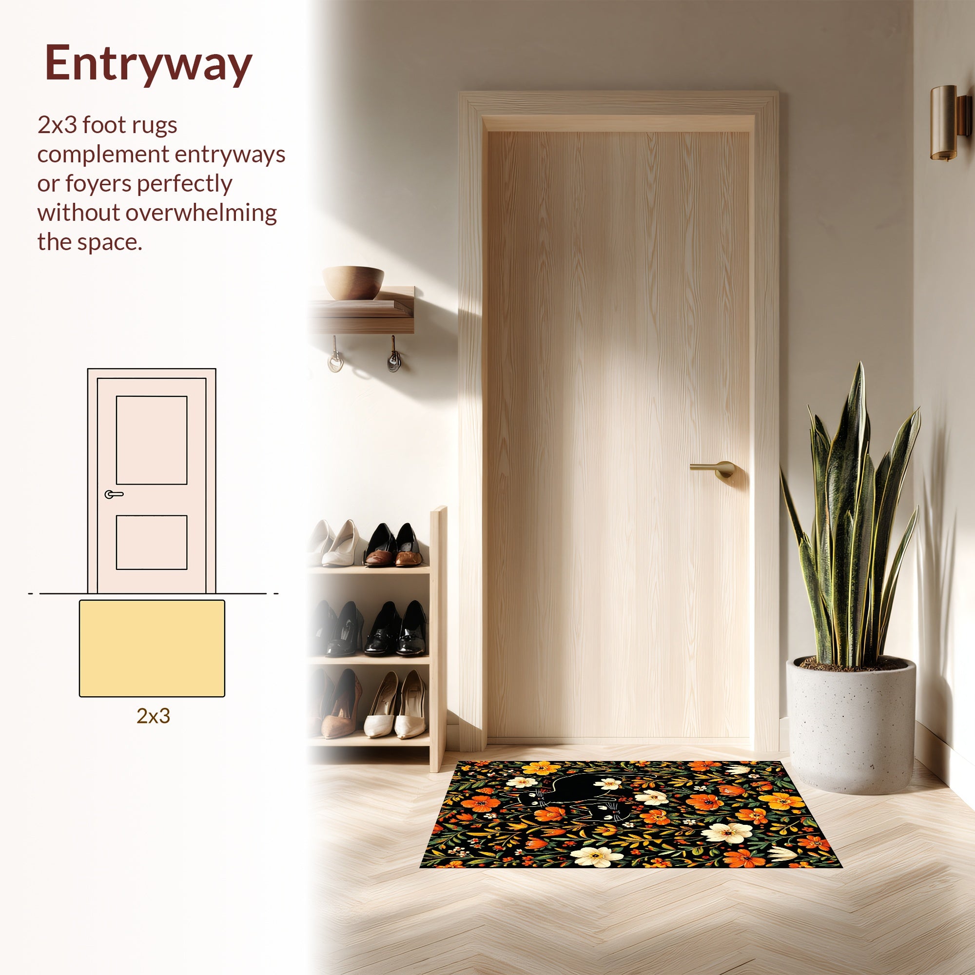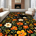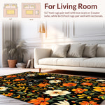 Flatwoven High Traffic Area Rug, Elegant Cat and Floral, Non Slip, Stain Resistant, Washable Area Rugs for Living Room, Bedroom (Black) Overview: