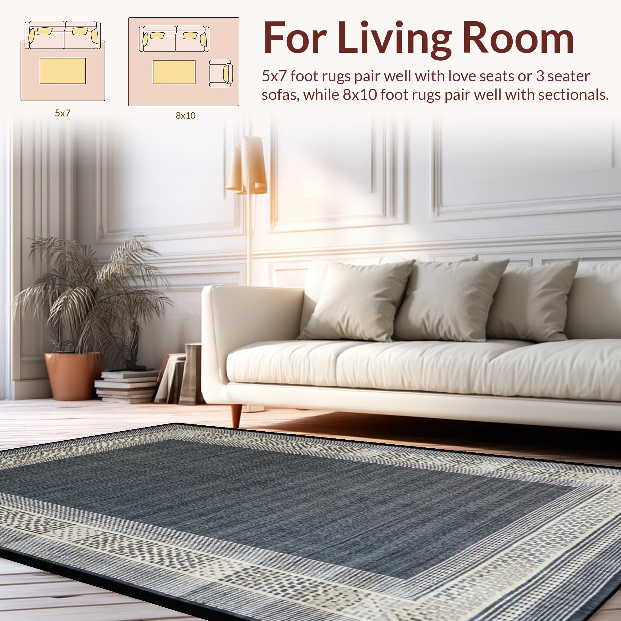 Ultra Soft Area Rug, Non Slip, Stain Resistant, Washable Area Rugs for Living Room, Bedroom, Elegant Charcoal Geometric Motif(Gray) Overview: