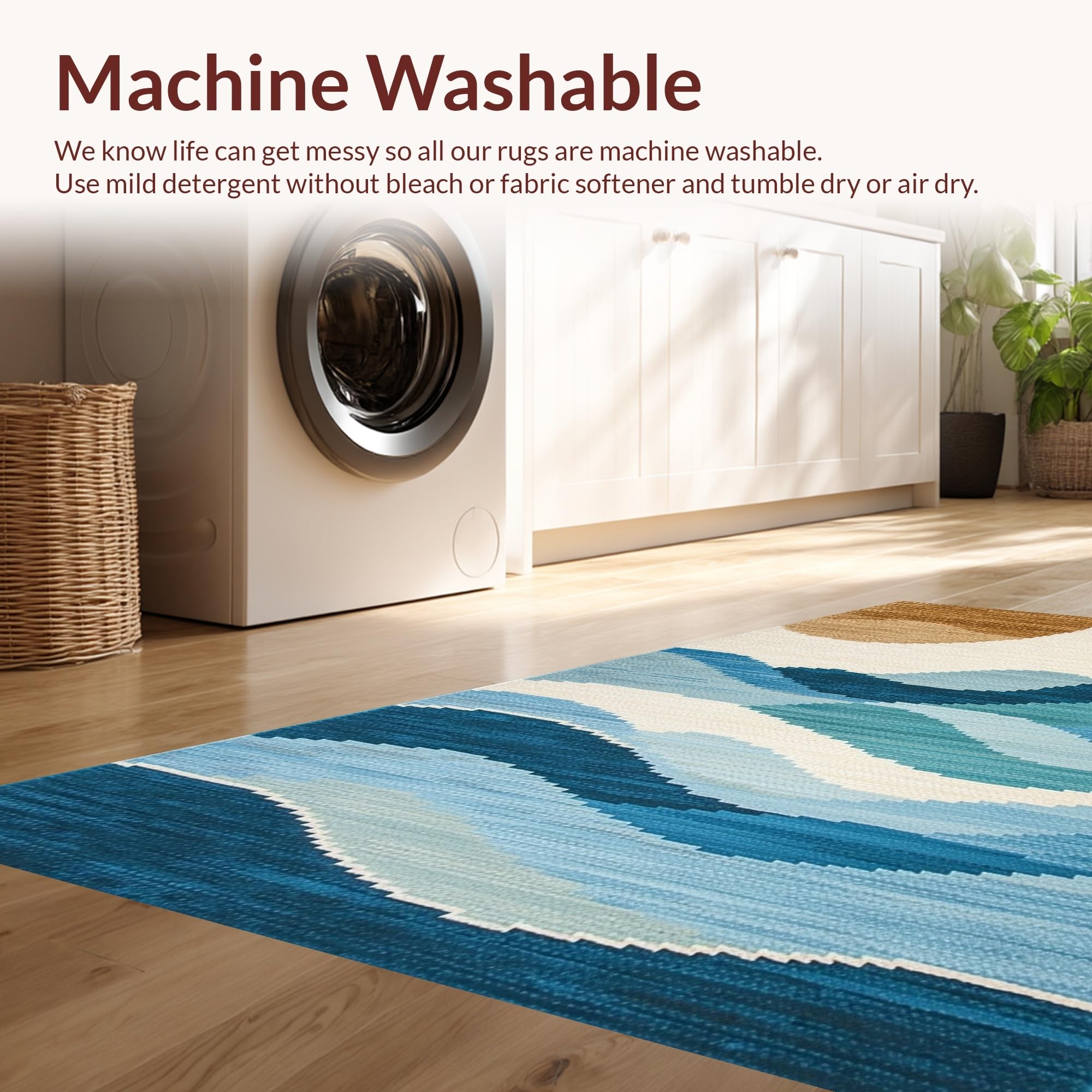- Machine Washable: Our rugs can be easily thrown in the wash machine.