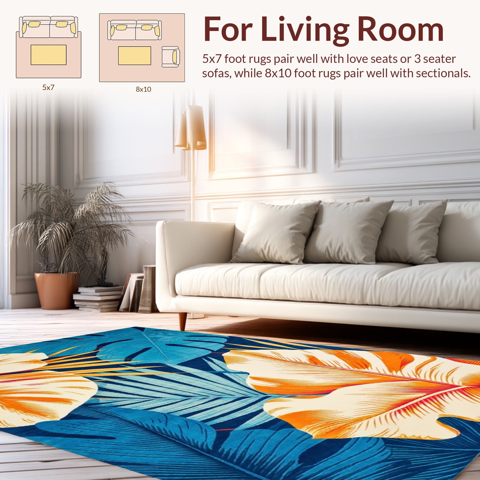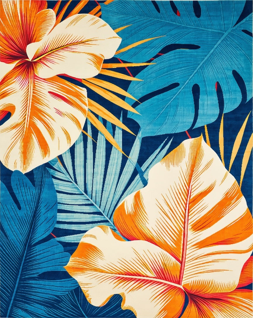 Flatwoven High Traffic Area Rug, Elegant Colorful Tropical Aesthetic, Non Slip, Stain Resistant, Washable Area Rugs for Living Room, Bedroom (Blue) Overview:
