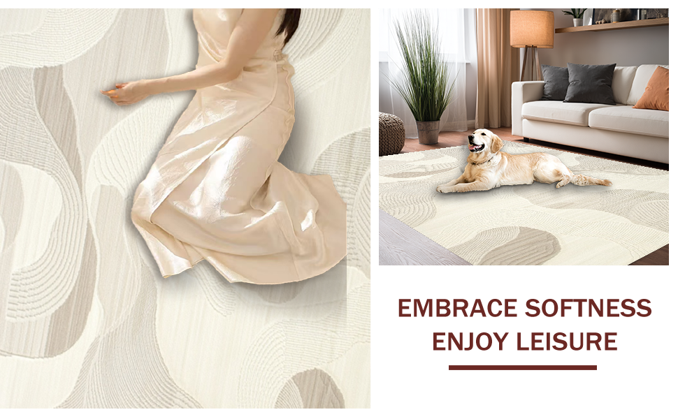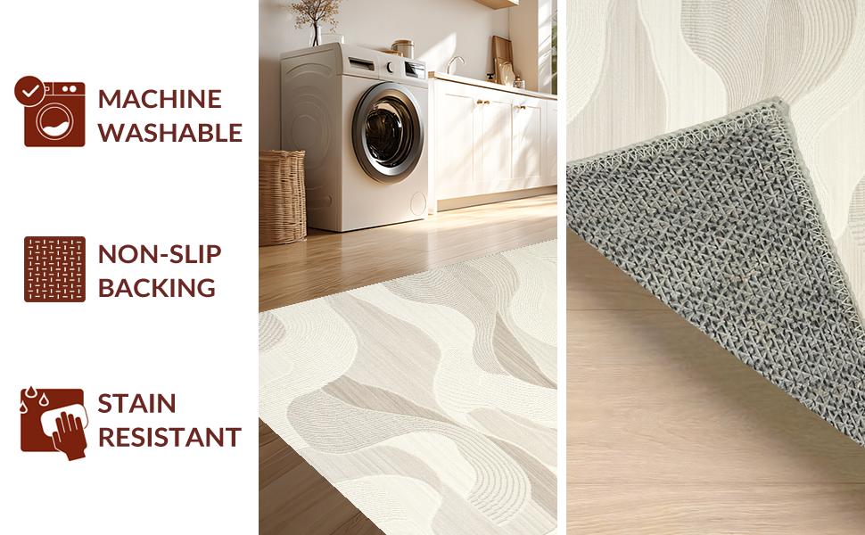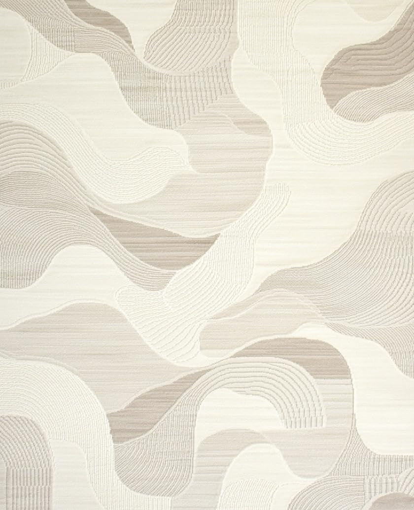Ultra Soft Area Rug, Non Slip, Stain Resistant, Washable Area Rugs for Living Room, Bedroom, Elegant Cream Geometric Wave Design(Beige) Overview: