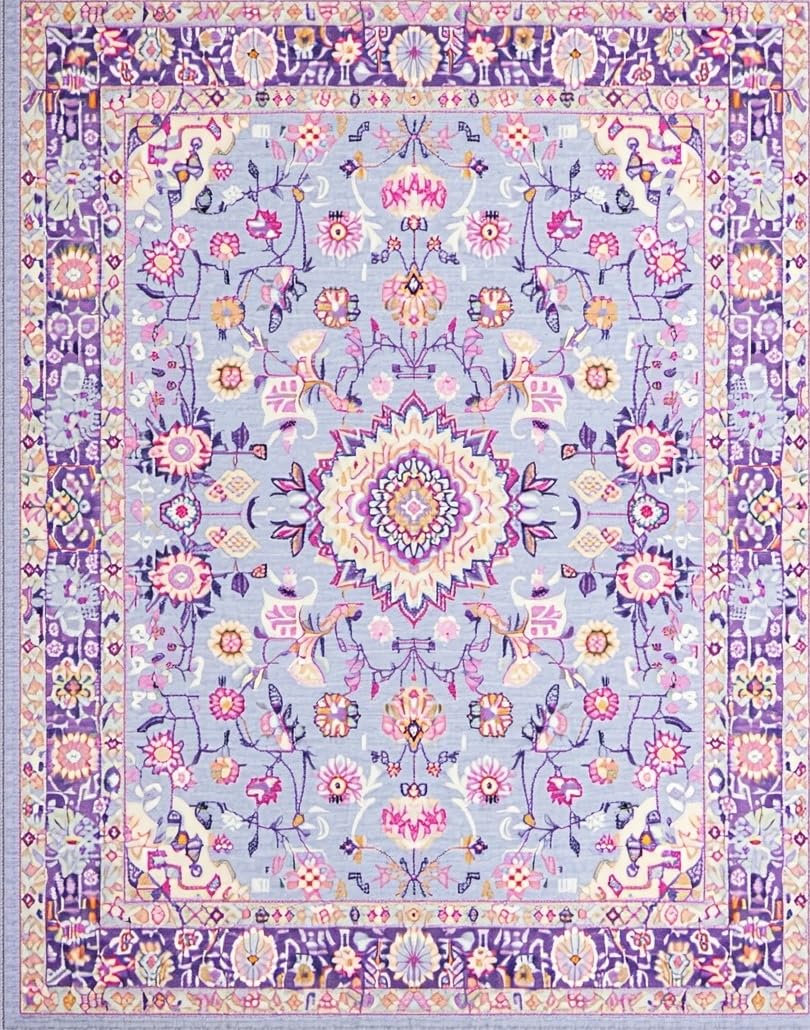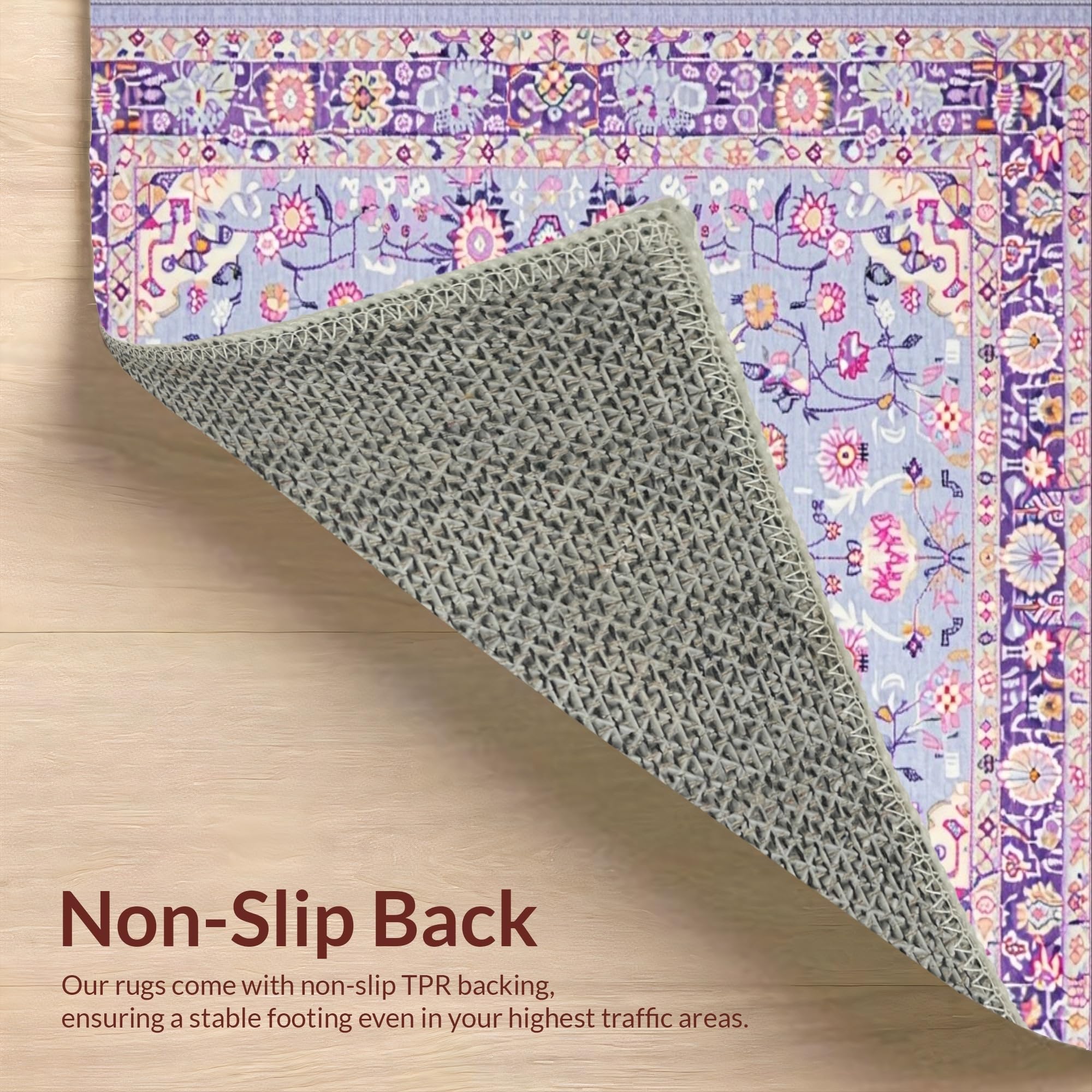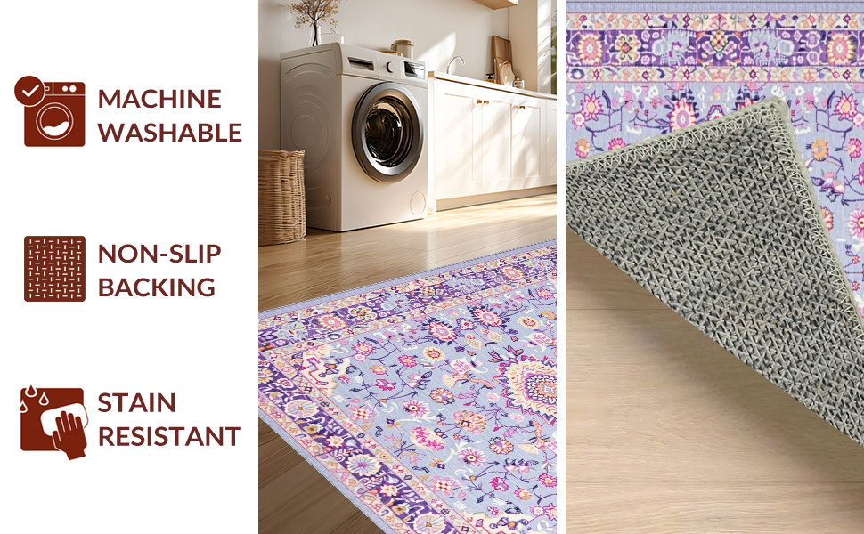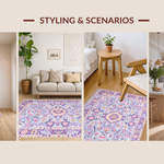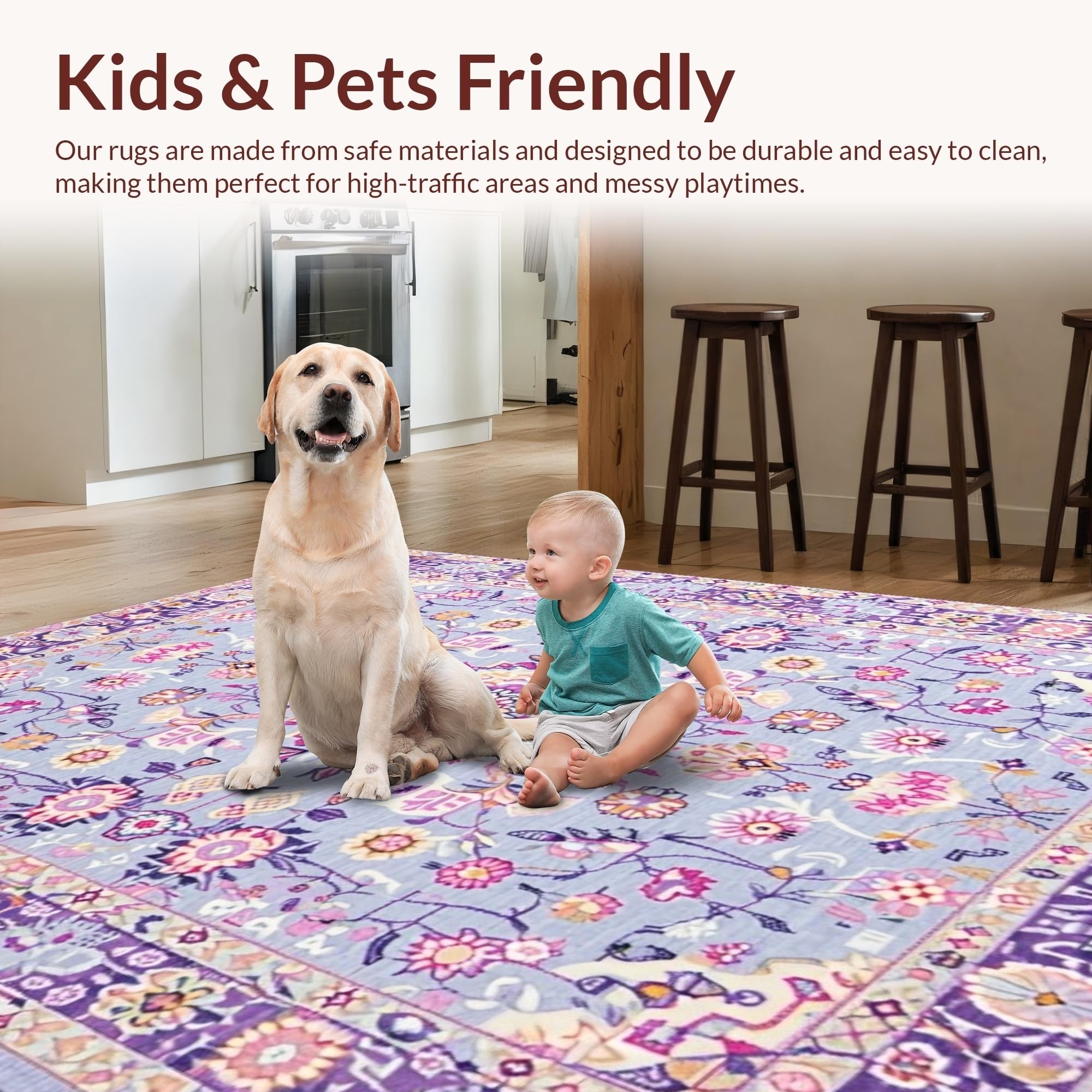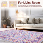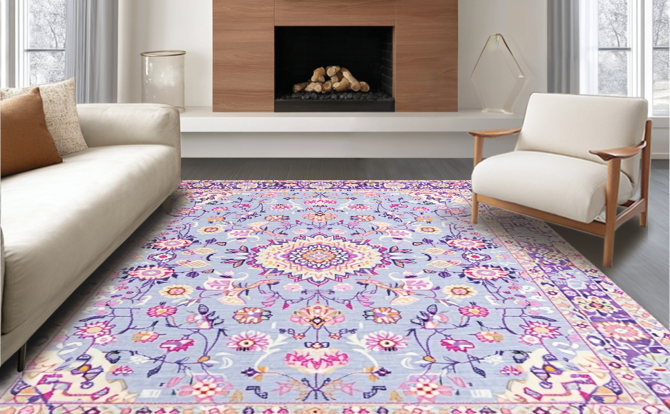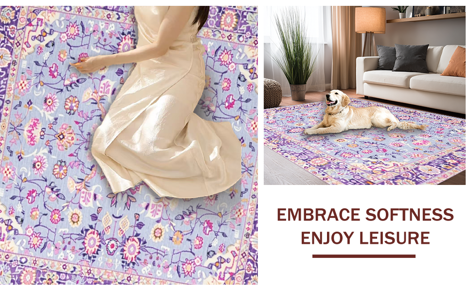 Ultra Soft Area Rug, Non Slip, Stain Resistant, Washable Area Rugs for Living Room, Bedroom, Elegant Creamy Blooming Pattern(Purple) Overview: