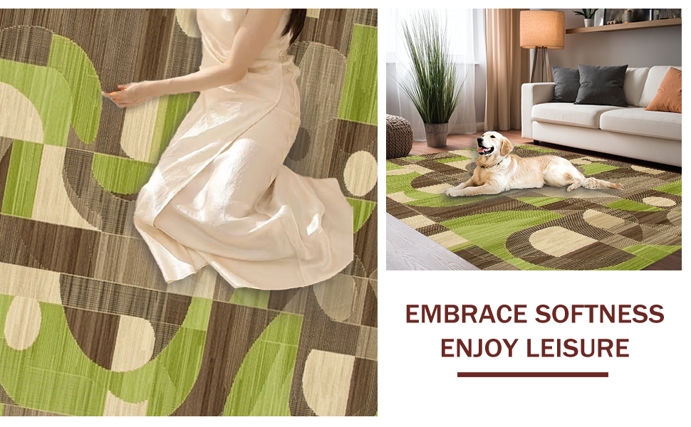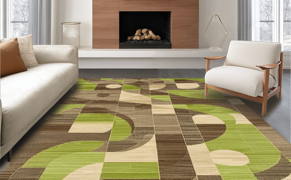 Ultra Soft Area Rug, Non Slip, Stain Resistant, Washable Area Rugs for Living Room, Bedroom, Elegant Curvilinear Pattern Motif(Green) Overview: