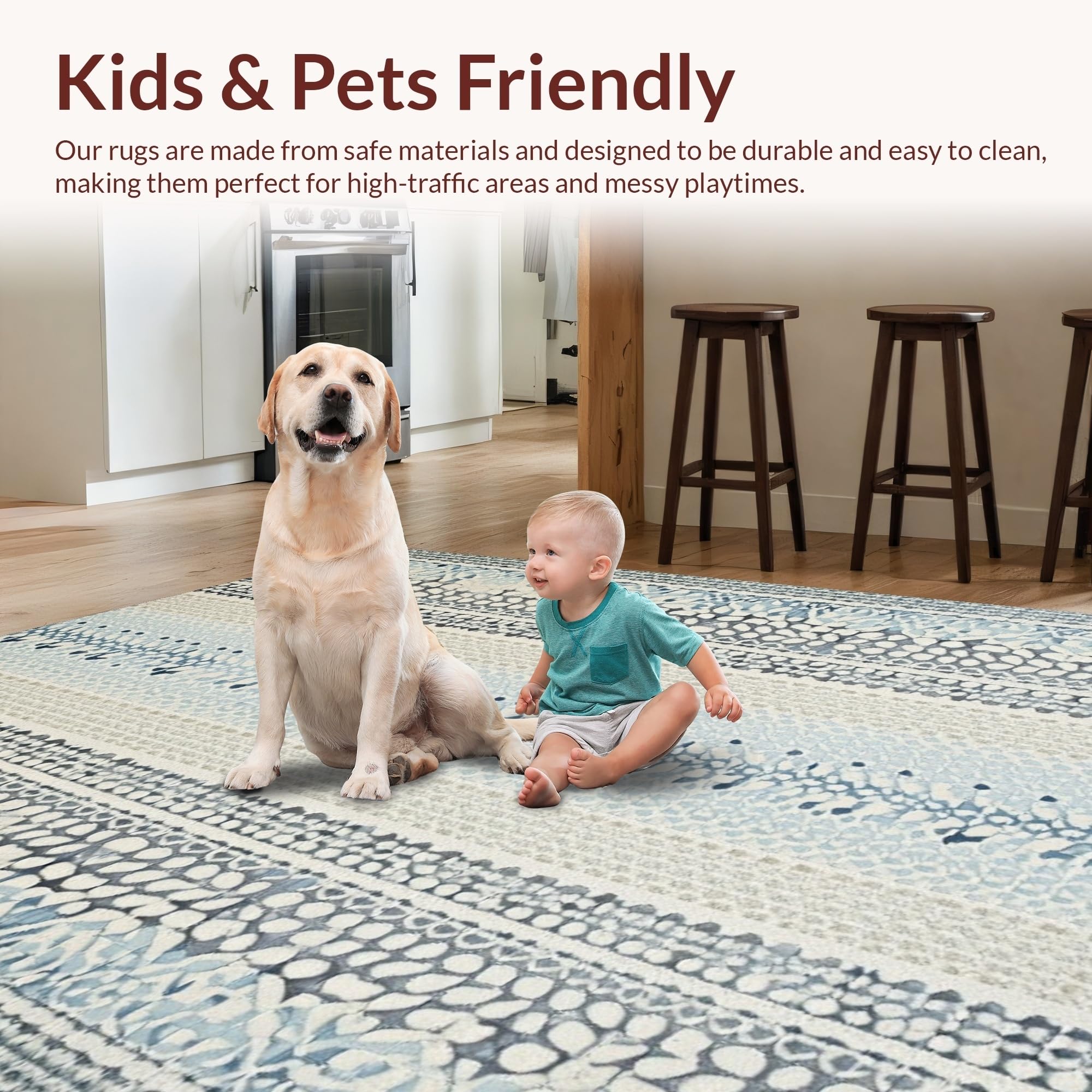 Ultra Soft Area Rug, Non Slip, Stain Resistant, Washable Area Rugs for Living Room, Bedroom, Elegant Curvy Edge Aesthetic(Gray) Overview: