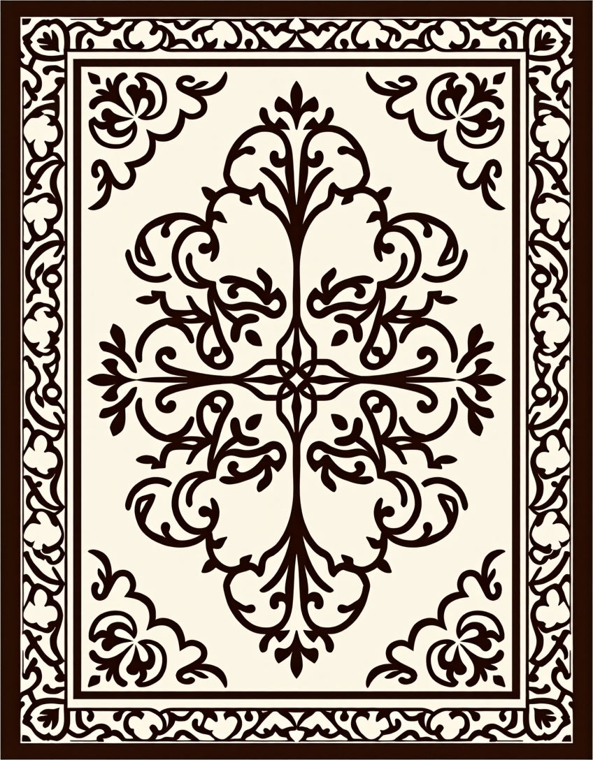 Elegant Damask Blending Curved Flourishes and Symmetrical Accents(Brown)