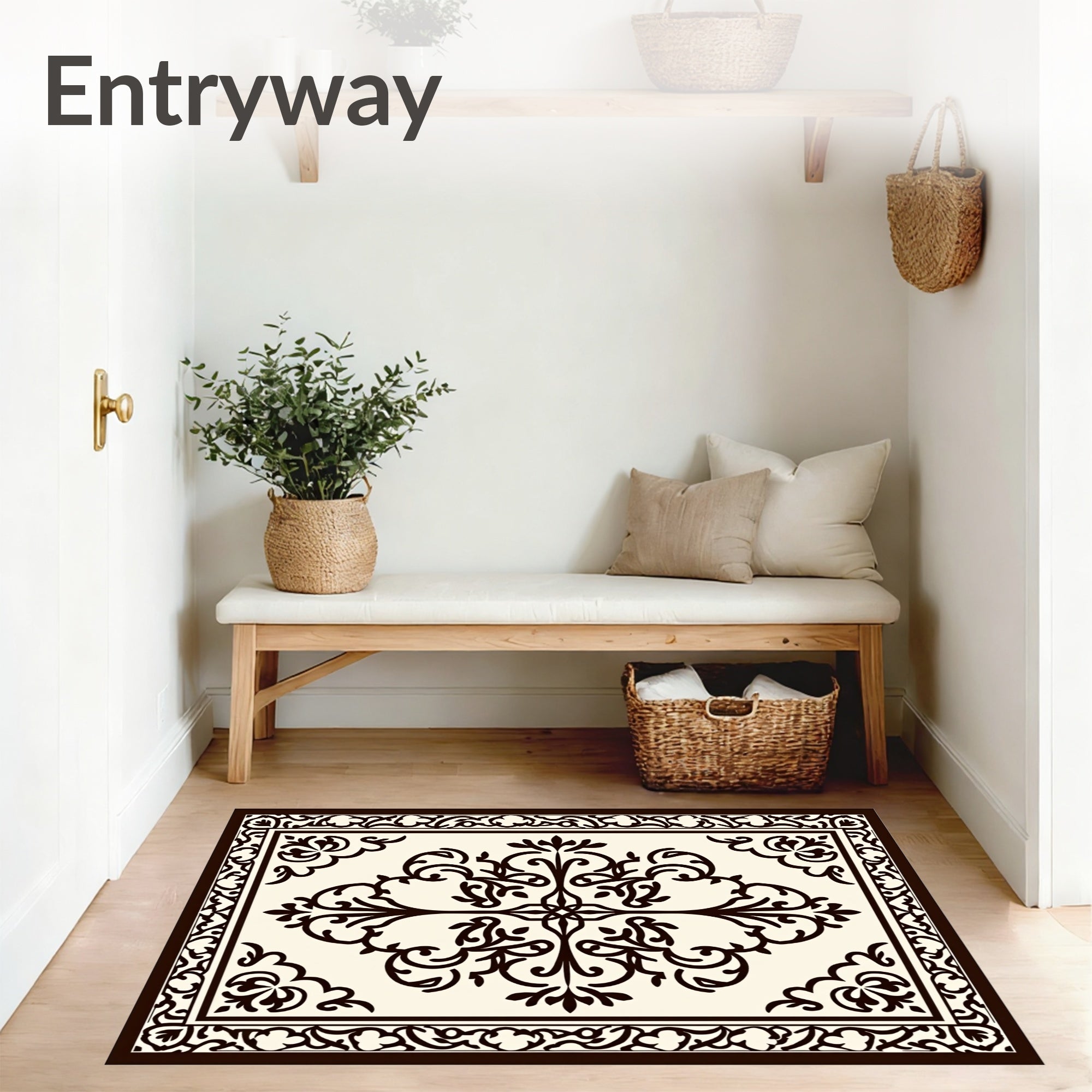 Flatwoven High Traffic Area Rug, Elegant Damask Blending Curved Flourishes and Symmetrical Accents, Non Slip, Stain Resistant, Washable Area Rugs for Living Room, Bedroom (Brown) Overview: