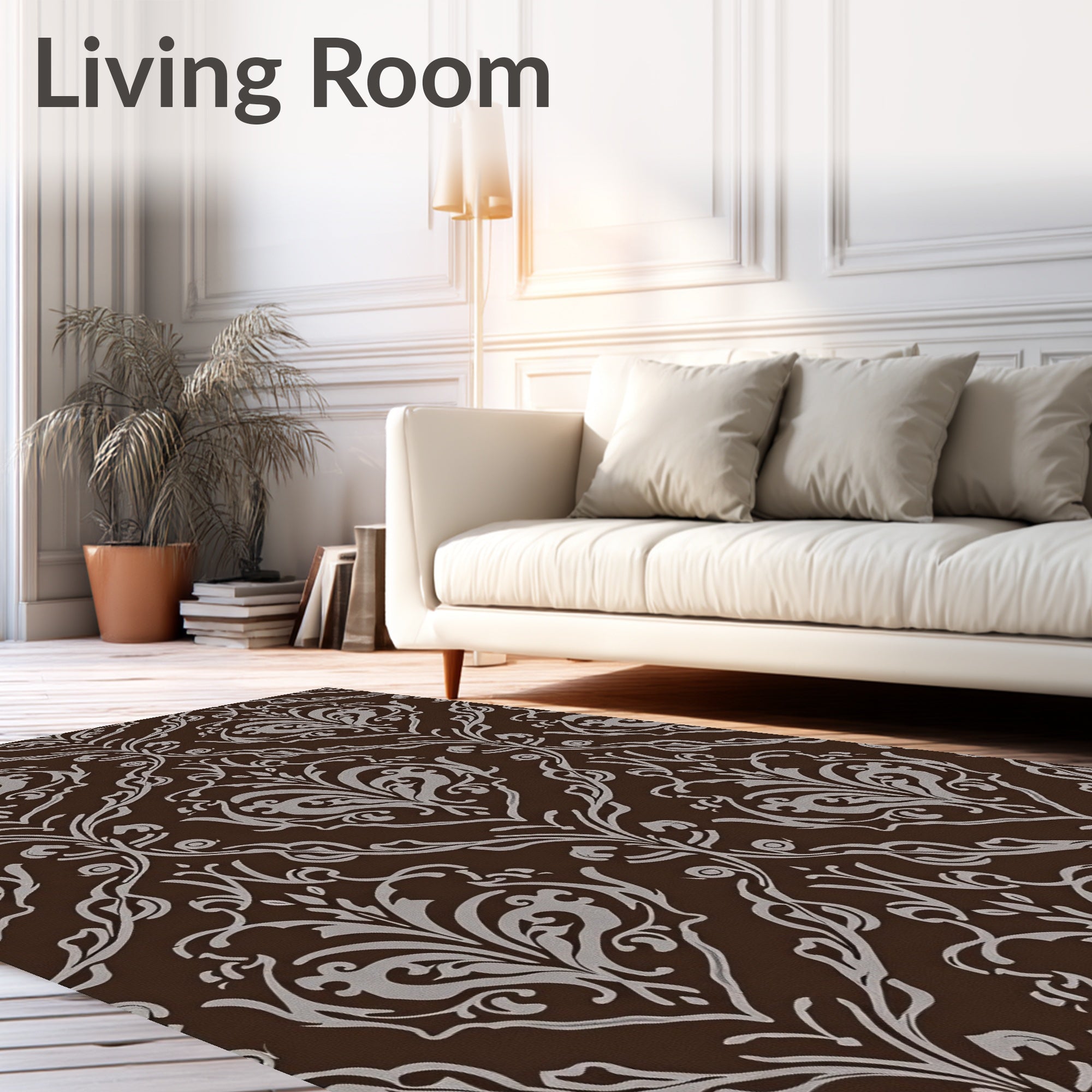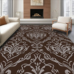 Flatwoven High Traffic Area Rug, Elegant Damask Swirl Contemporary Artistic, Non Slip, Stain Resistant, Washable Area Rugs for Living Room, Bedroom (Brown) Overview: