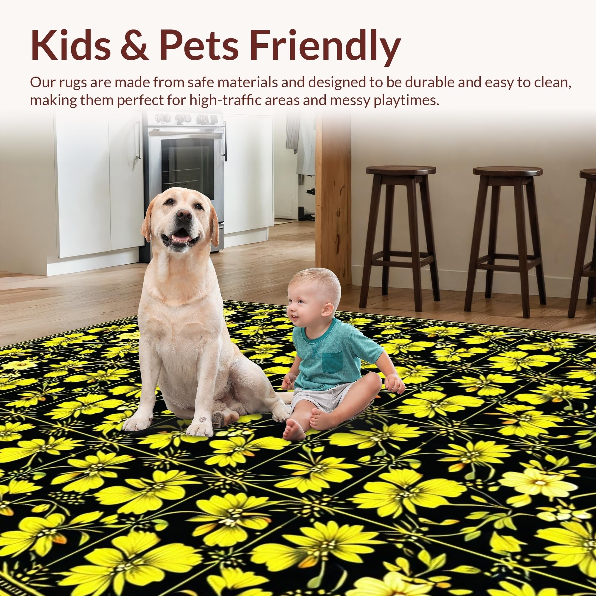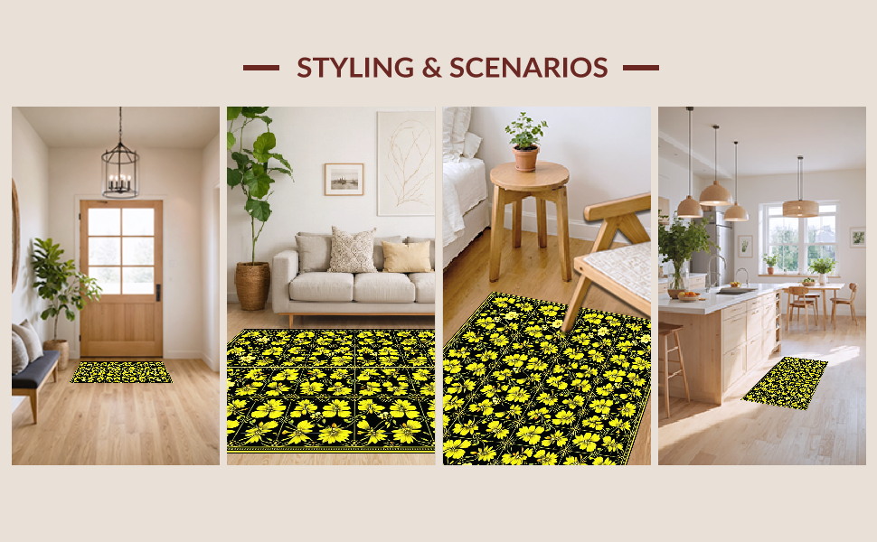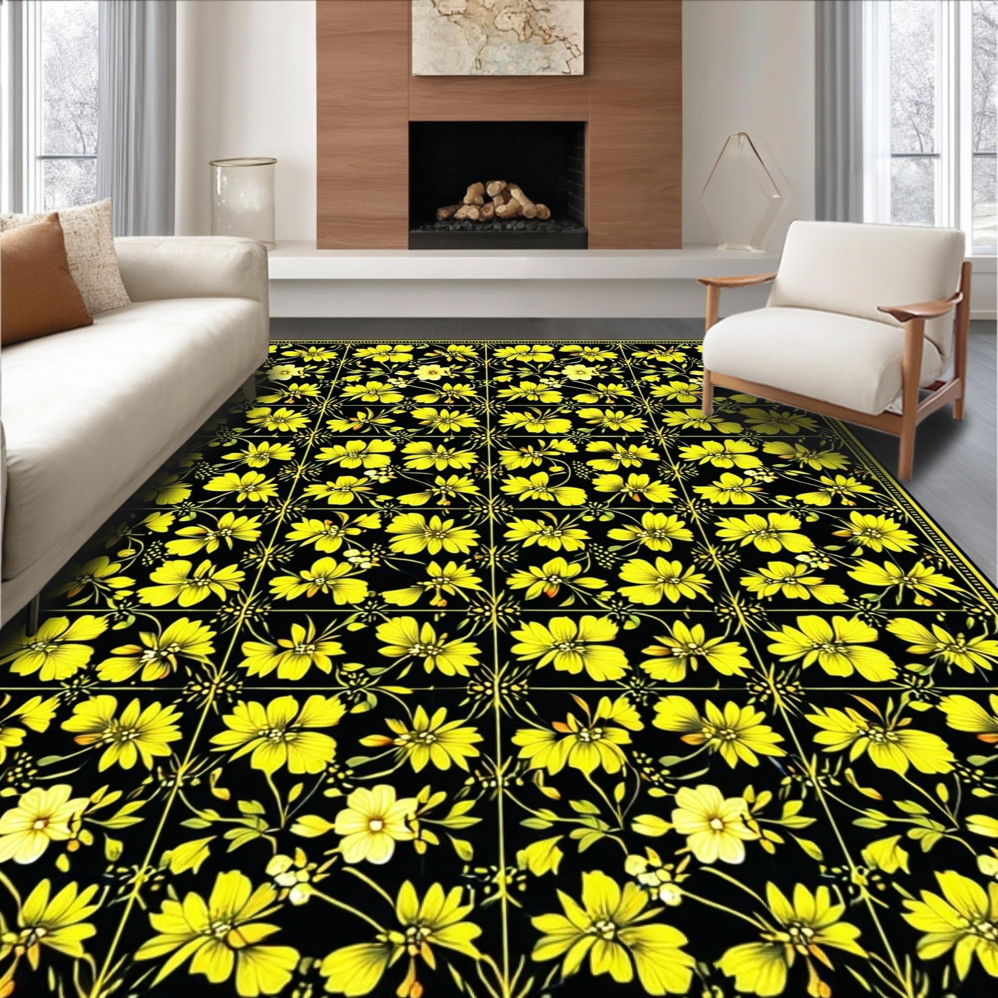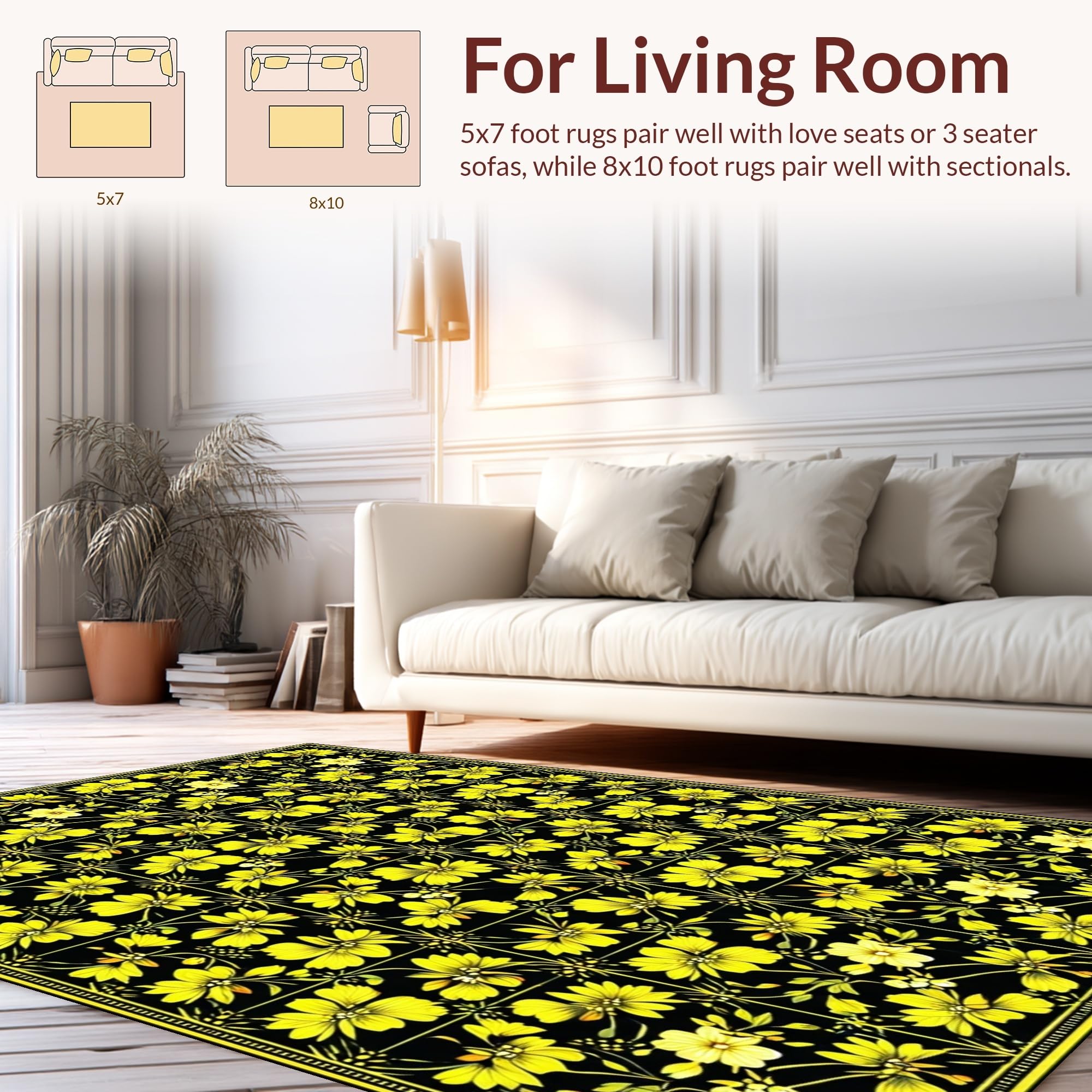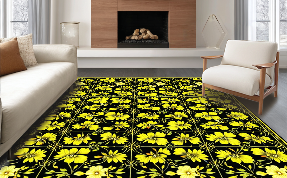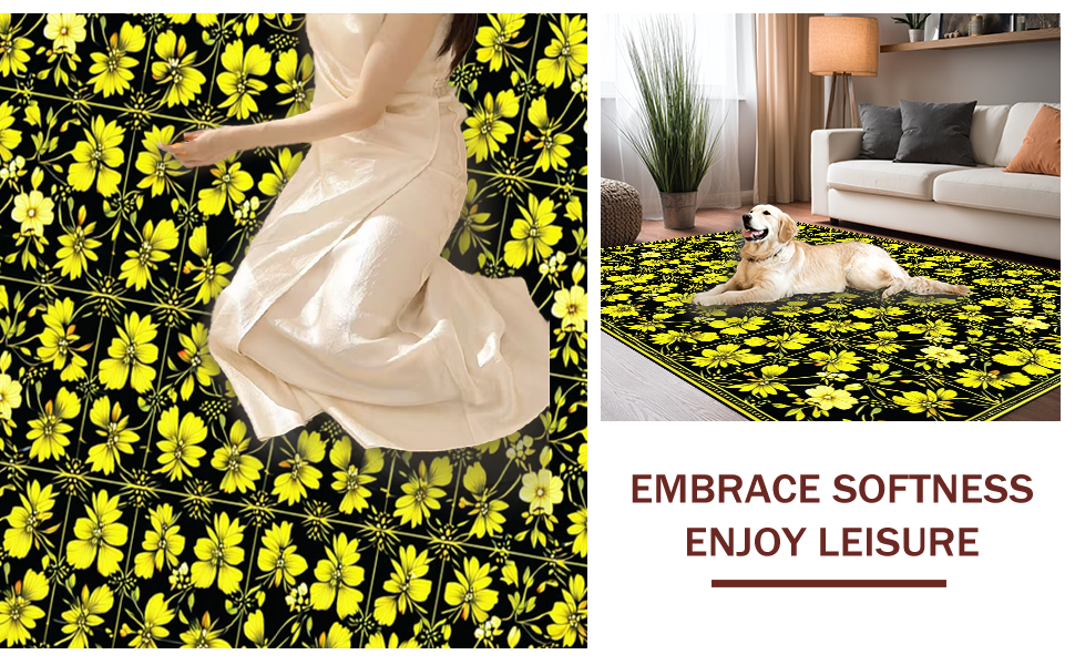 Ultra Soft Area Rug, Non Slip, Stain Resistant, Washable Area Rugs for Living Room, Bedroom, Elegant Dark Floral Aesthetic(Black) Overview: