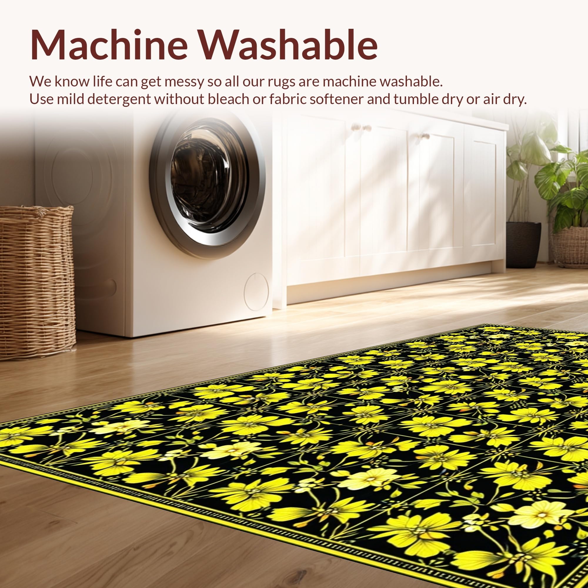 - Machine Washable: Our rugs can be easily thrown in the wash machine.