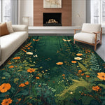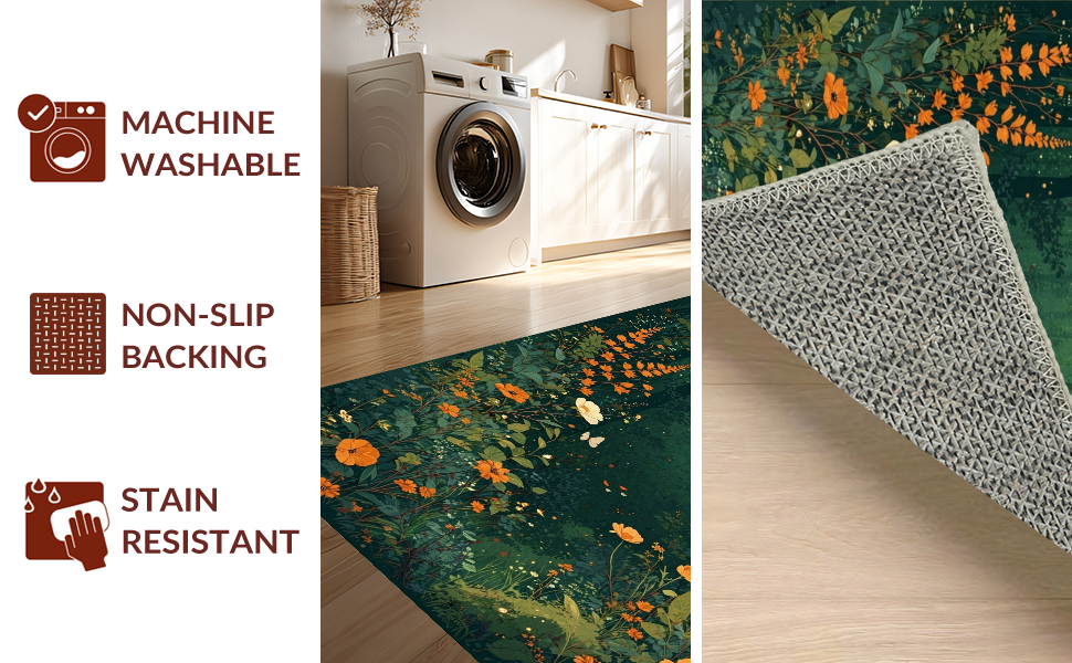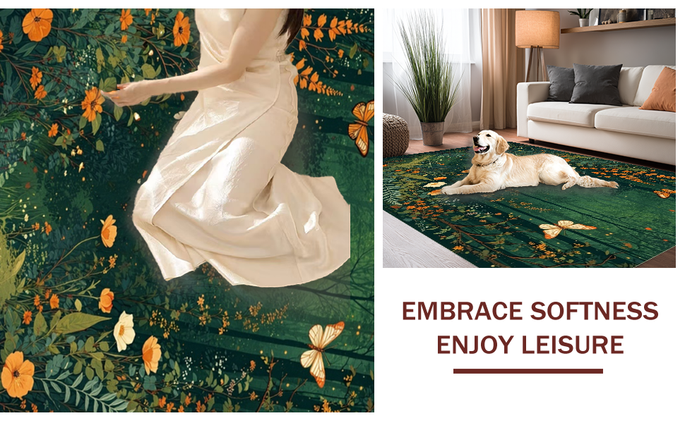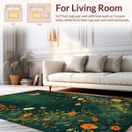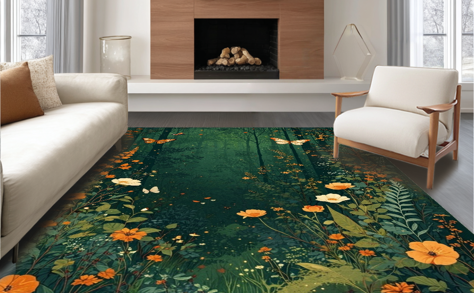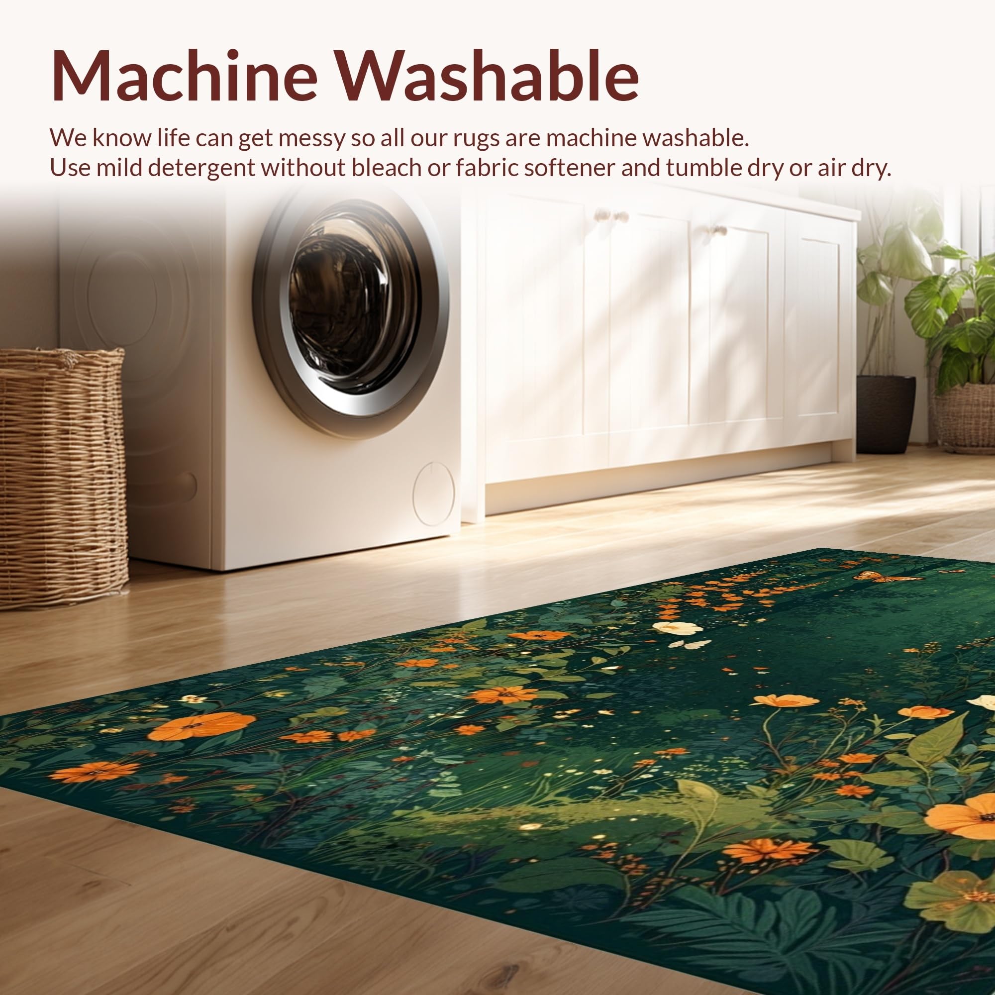 Ultra Soft Area Rug, Non Slip, Stain Resistant, Washable Area Rugs for Living Room, Bedroom, Elegant Dark Floral Arrangement(Green) Overview: