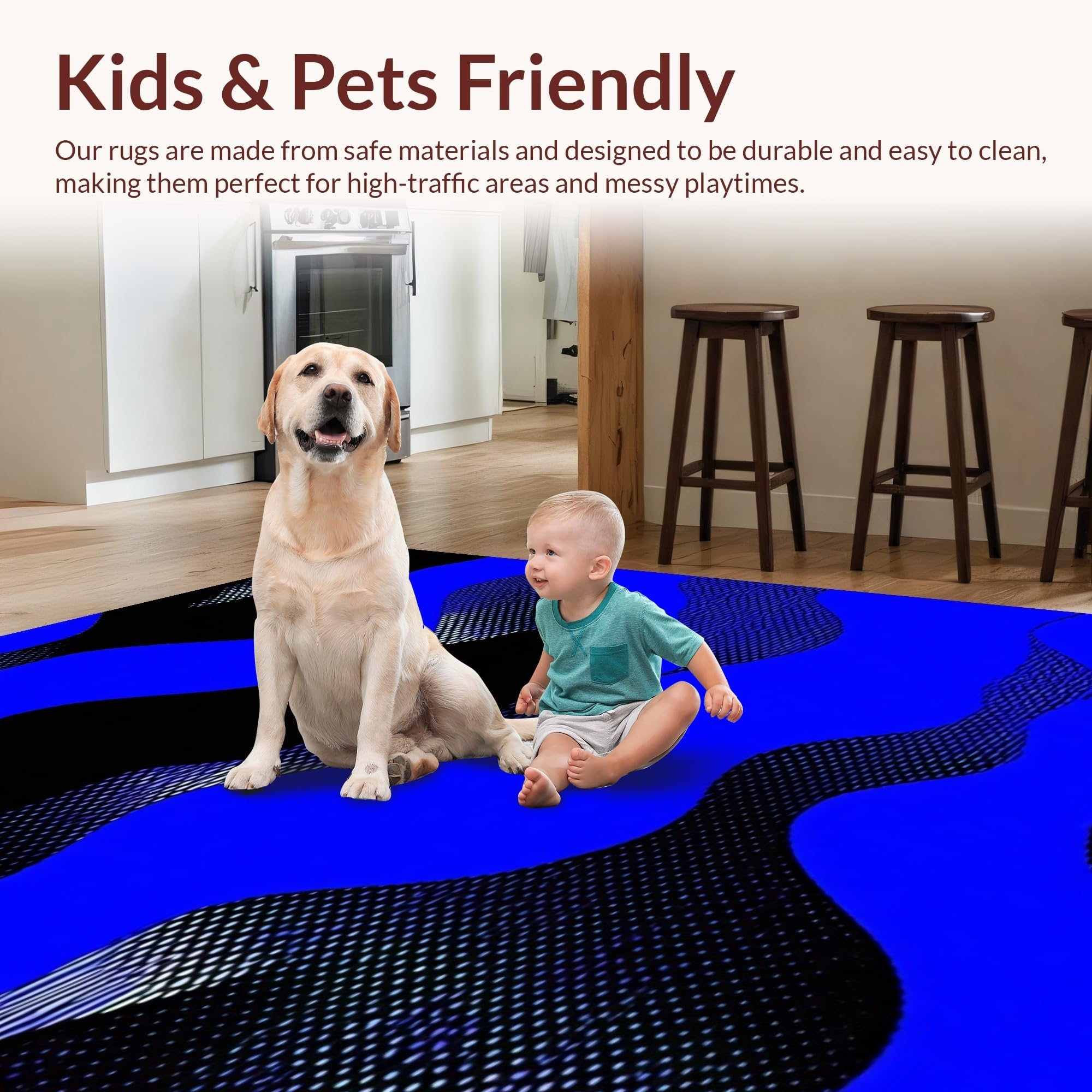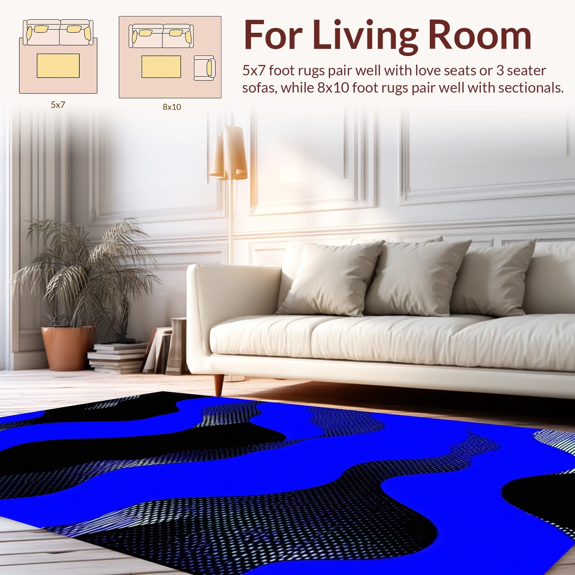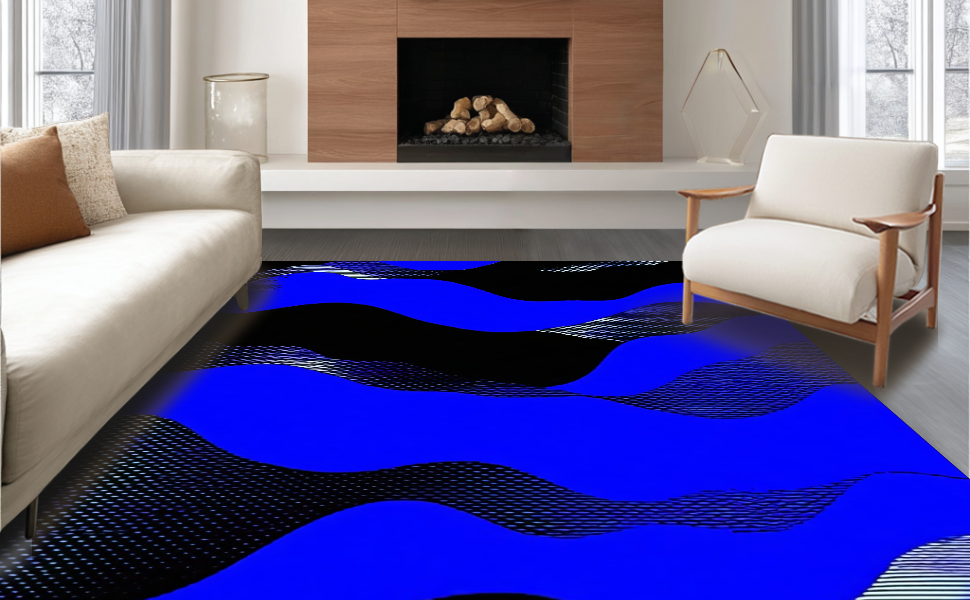 Ultra Soft Area Rug, Non Slip, Stain Resistant, Washable Area Rugs for Living Room, Bedroom, Elegant Dark Sea Inspired Art(Blue) Overview: